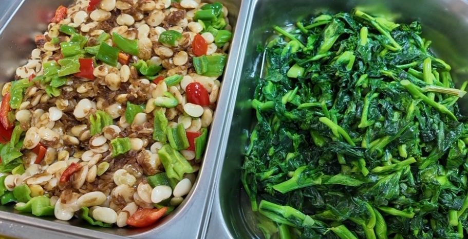 临近中午,新河镇新禾社区食堂内同样热闹非凡。居民们有序排队,取餐区内,红烧山药、咸菜炒豆瓣、冬瓜炒毛豆、青鱼豆腐汤等一道道应季菜品热气腾腾,色香味俱全。菜肴烹饪方式以清炒为主,力求最大程度保留食材的天然清香和营养成分。