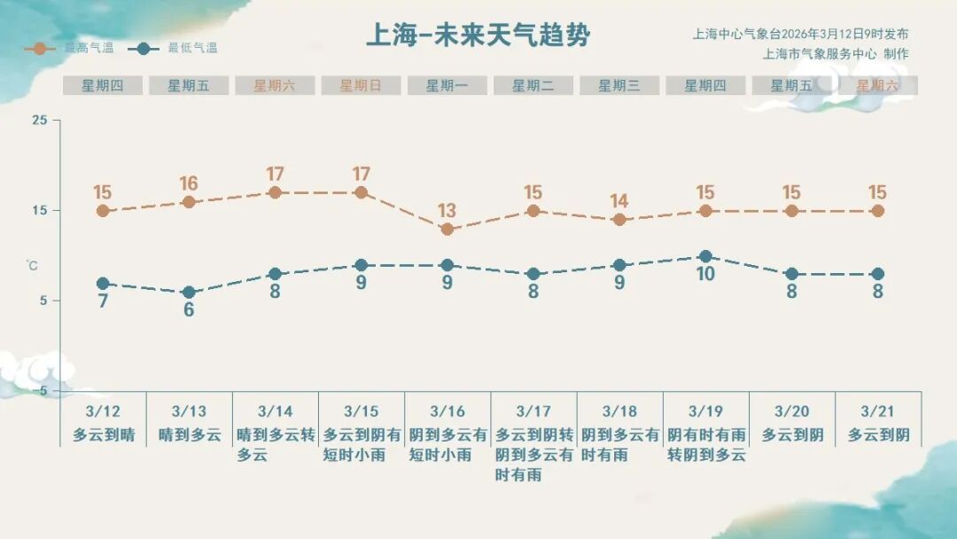 周日开始,短波槽活动频繁,申城多阴雨天气过程,雨水时断时续,气温也有小幅波动。春季天气节奏变化较快,还请及时关注最新预报信息。