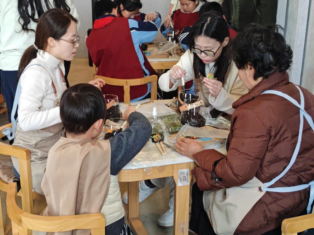 活动还安排了颇具特色的动手实践环节——生态瓶DIY,大家将土壤、小型绿植及装饰摆件巧妙搭配,制作出一个个充满生机的景观生态瓶,将“绿色家园”带回家。
