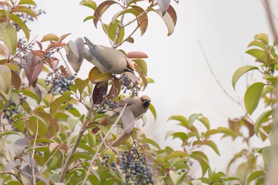 小太平鸟在取食女贞的果实 | 郑运祥 摄