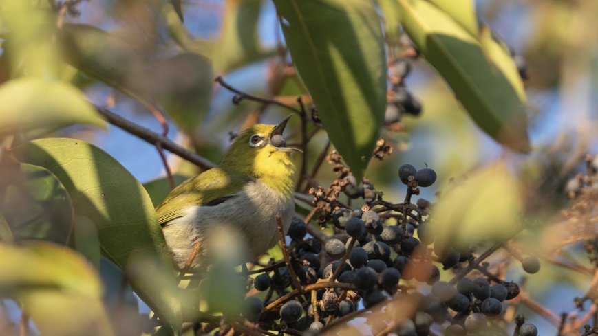 暗绿绣眼鸟在取食女贞的果实 | 郑运祥 摄