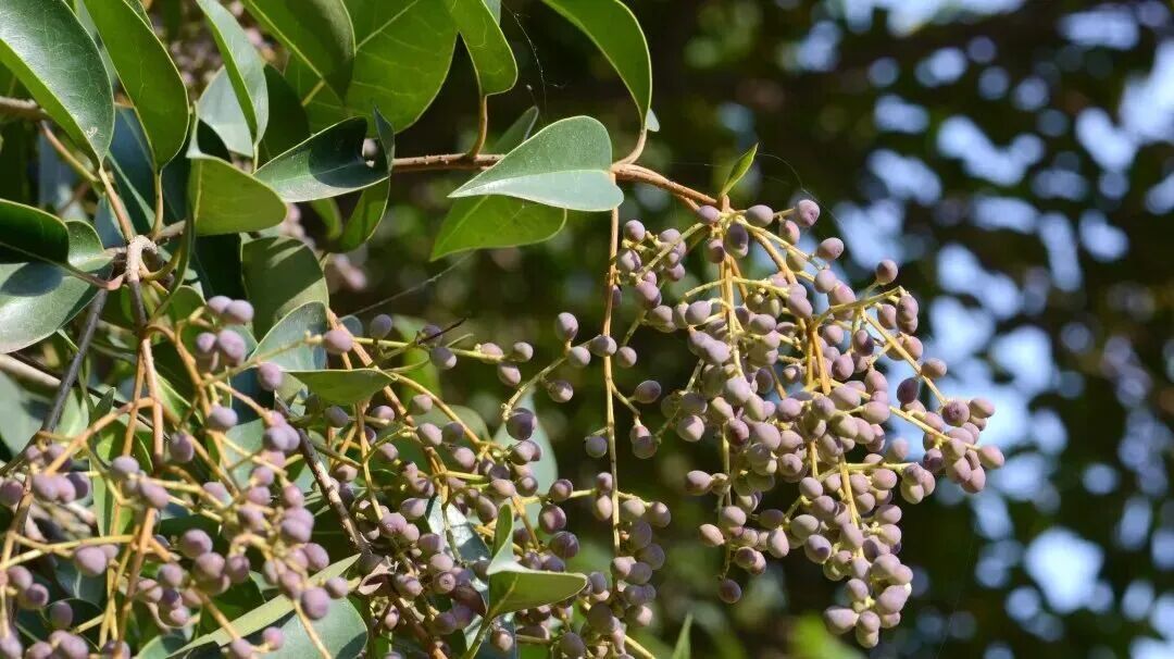 盛花期的女贞花开如瀑,经过城市昆虫的授粉后,果实便会开始发育,果序从最初的稀稀落落到成熟后的密密麻麻,果皮从青绿色到淡红紫色到黑蓝紫色,我们就得到了一串串的“女贞子”。