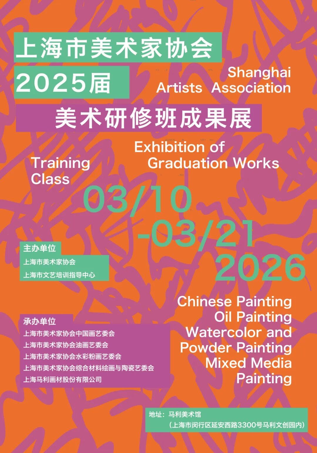 3月10日下午,由上海市美术家协会、上海市文艺培训指导中心共同主办,上海市美术家协会中国画艺委会、油画艺委会、水彩粉画艺委会、综合材料绘画与陶瓷艺委会,上海马利画材股份有限公司联合承办的“上海市美术家协会2025届中国画、油画、水彩粉画、综合材料绘画研修班”在马利美术馆举办成果展和总结交流会。