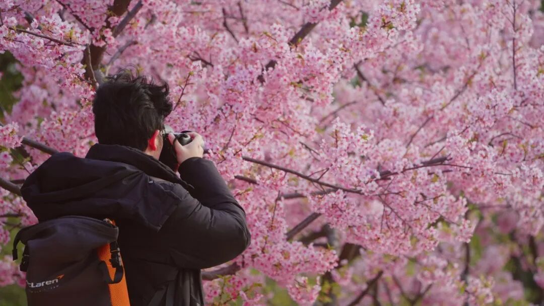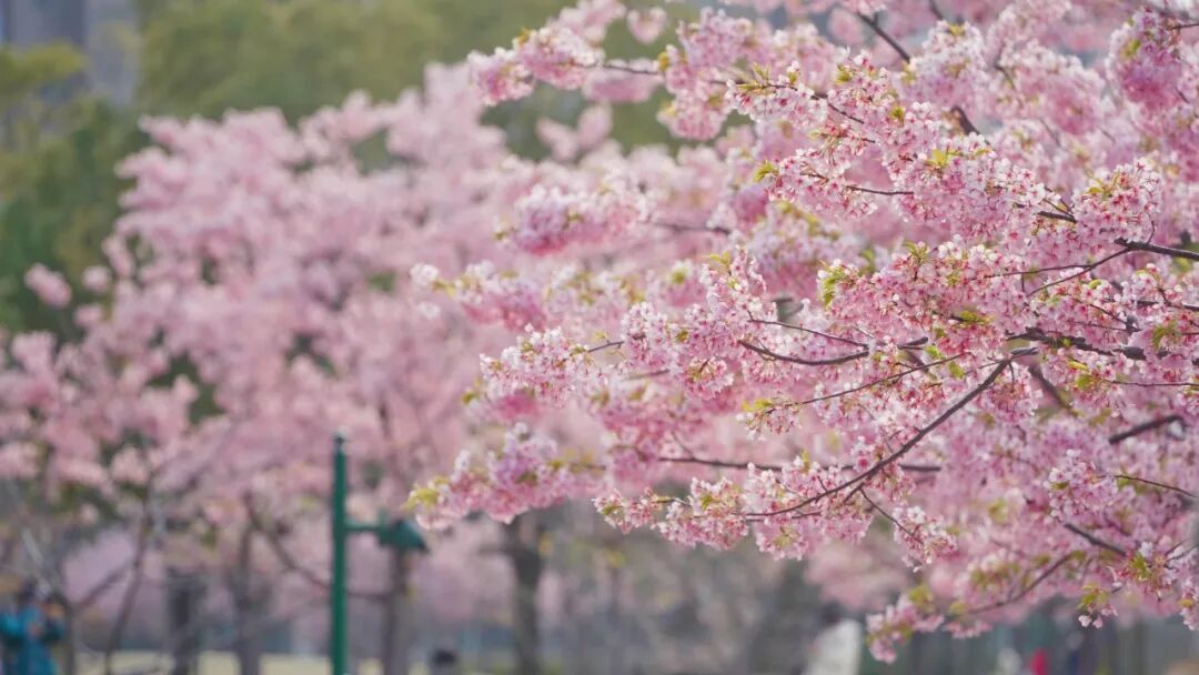 据悉,园内200余株河津樱主要分布在公园的沿湖步道两侧及“C弯区”其他点位有少量分布,目前正值最佳观赏期。河津樱花期较早,花色粉嫩艳丽,花开繁密,是春日拍照的绝佳选择。