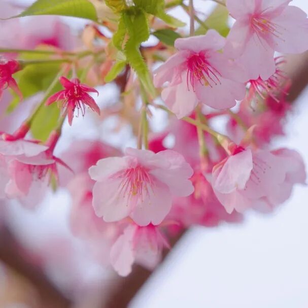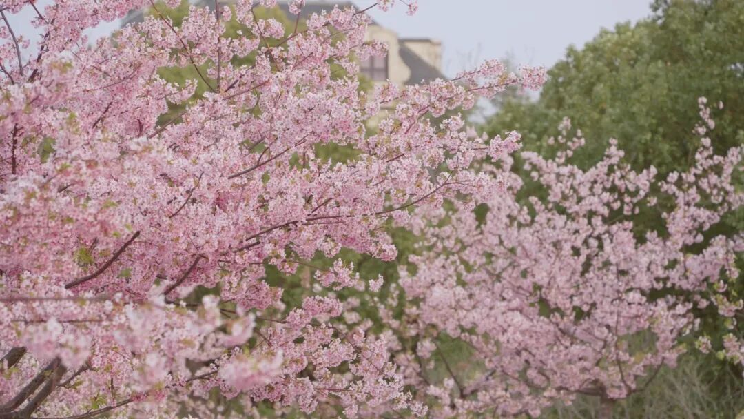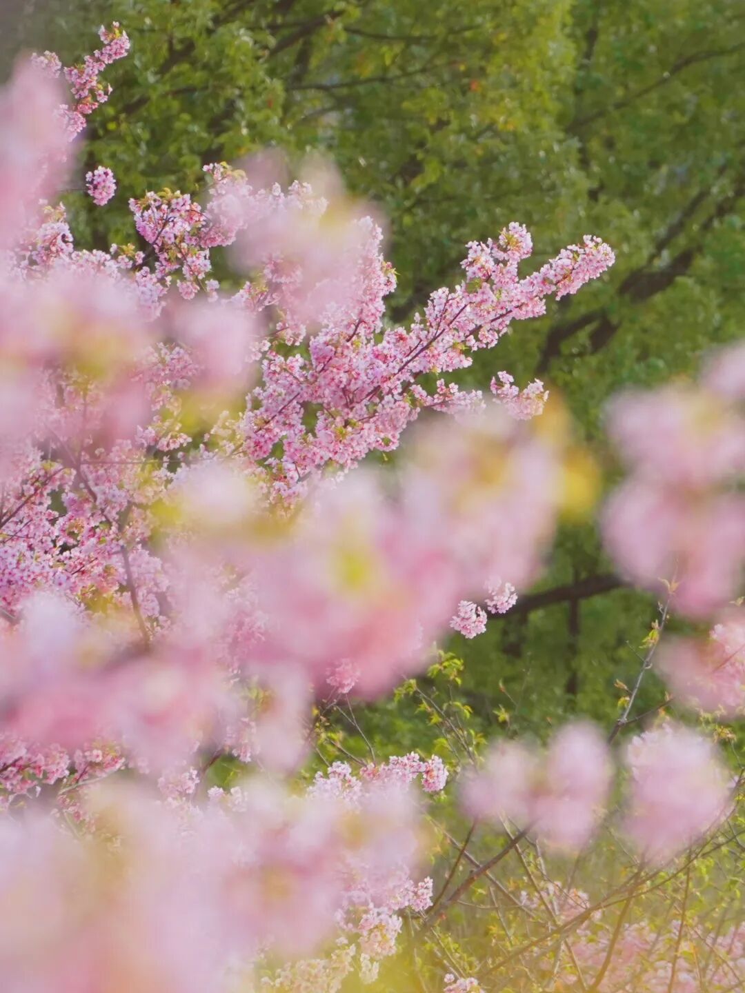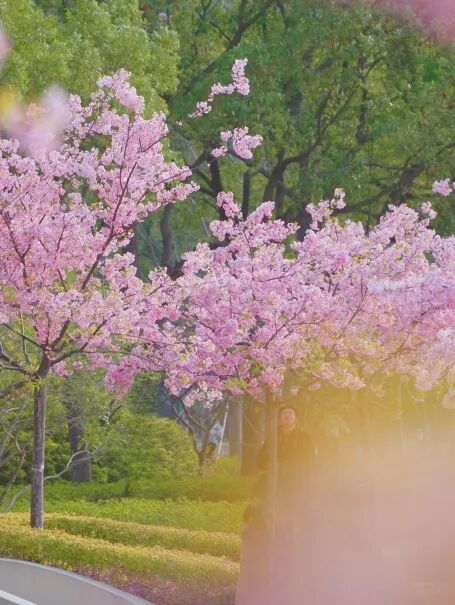 与其他樱花有所不同,河津樱的花色格外粉嫩娇艳,花瓣薄如蝉翼,在阳光映照下通透如玉,远望如绯色云霞,近看则朵朵精致。微风拂过,花瓣簌簌飘落,下起一场温柔的“樱花雨”,每一帧都美得可以直接做壁纸。