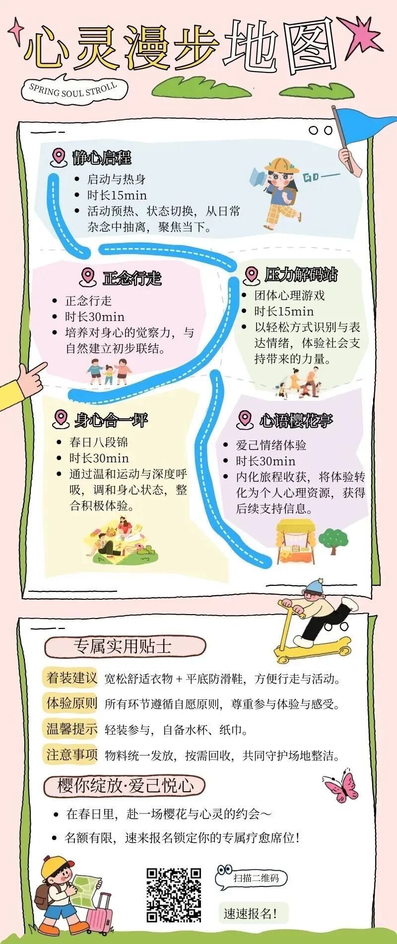 正念行走赏樱、团体游戏解压、