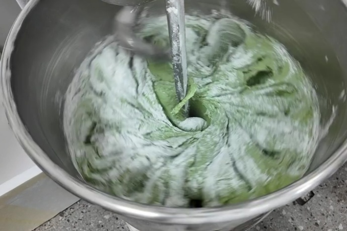 与此同时,城桥镇善意楼传统手工坊的青团也于近日上市。上午,记者在店内看到,工作人员正忙碌地制作青团。他们将新鲜艾草熬煮、打碎成汁后,拌入糯米粉揉匀,再包入馅料,搓圆成型,现场一派繁忙景象。