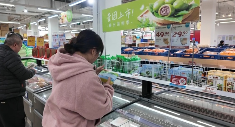 在位于城桥镇的超盒算NB金鳌山店,记者看到,不同品牌、口味的青团已摆放在醒目位置,成为店内新晋“春日主角”。据介绍,门店在售青团包含豆沙、蛋黄肉松、黑芝麻口味,价格在十几元至二十几元不等。软糯可口的青团吸引不少市民驻足选购,抢先品尝这一口“春天的味道”。