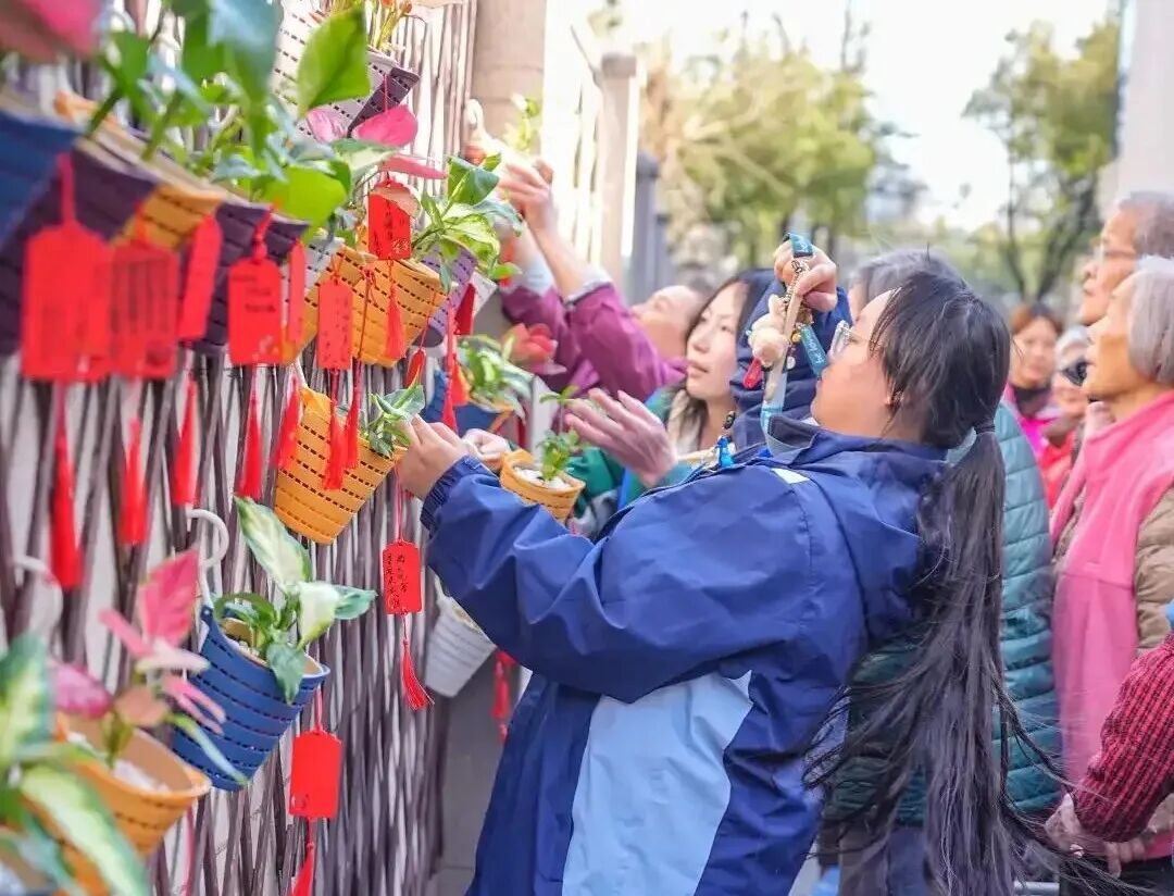 活动上,爷爷奶奶们领到了充满生机的小绿植,并在社工和学生的贴心陪伴下,小心翼翼地给幼苗安新家,仿佛把春天捧在了手心里。