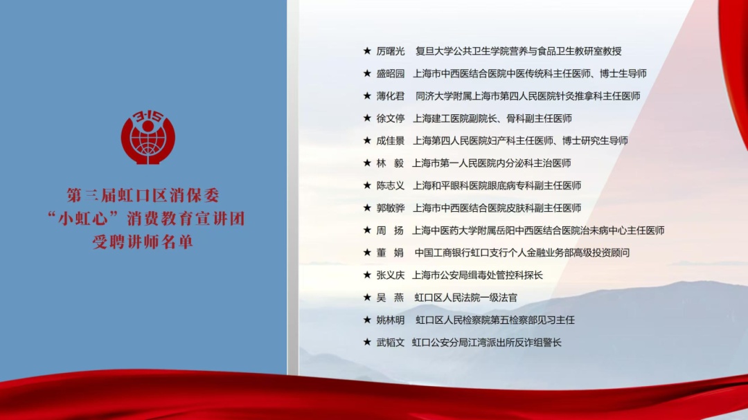 当天,2026年度“小虹心”消费教育首场主题讲座同步开讲。宣讲团专家、上海中医药大学主任医师盛昭园以《春季的健康饮食和中医调理》为主题,围绕春季市民关注度极高的养生消费误区、健康饮食原则、日常中医调理方法等内容,带来了兼具专业性与实用性的科普分享,现场通过互动答疑、一对一指导等形式,让市民沉浸式感受了升级后的全新授课模式。