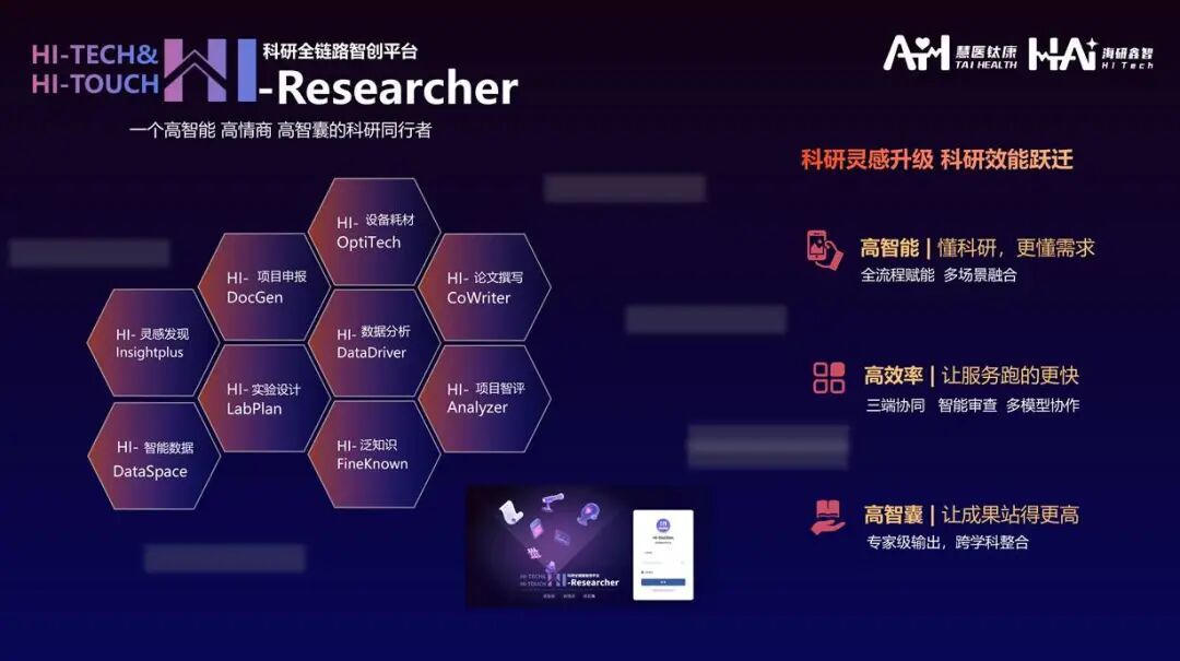 依托全栈自研的医学多模态大模型算法,慧医钛康构建“1+5+X”智能体协同矩阵,推出了五大核心产品线。本次公司将带来HI-Researcher科研全链路智创平台,覆盖灵感发现、高效写作等9大科研场景;同时将展出基于大语言模型的遗传性妇科肿瘤筛查智能健康助手。