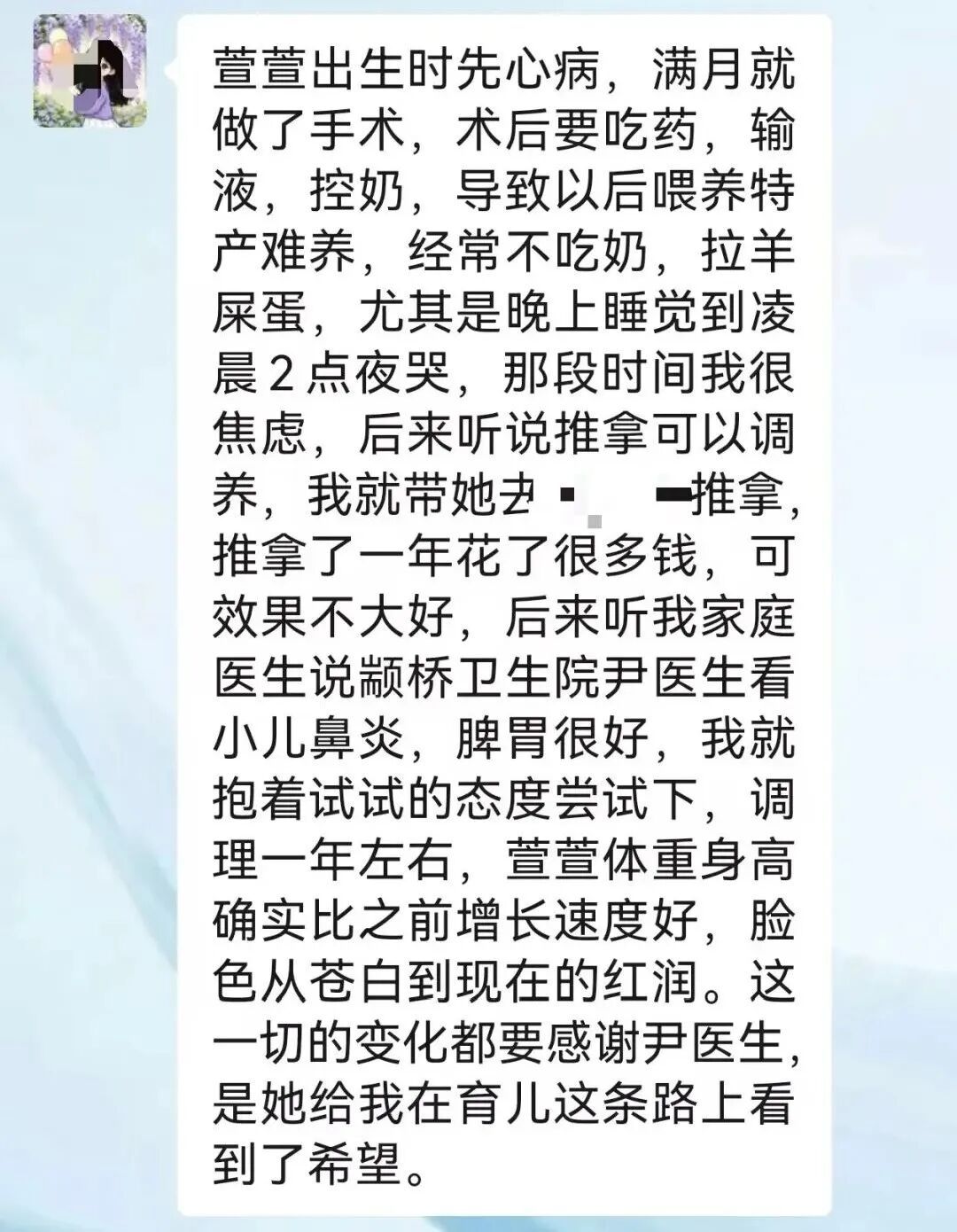找到根源后,她用温和的中药循序渐进调理脾胃,搭配特色海派儿科推拿,疏通经络、调和脏腑阴阳,促进营养吸收;同时耐心指导家长科学喂养、调整孩子作息,形成“中医调理+家庭养护”的闭环,让调理效果更持久。