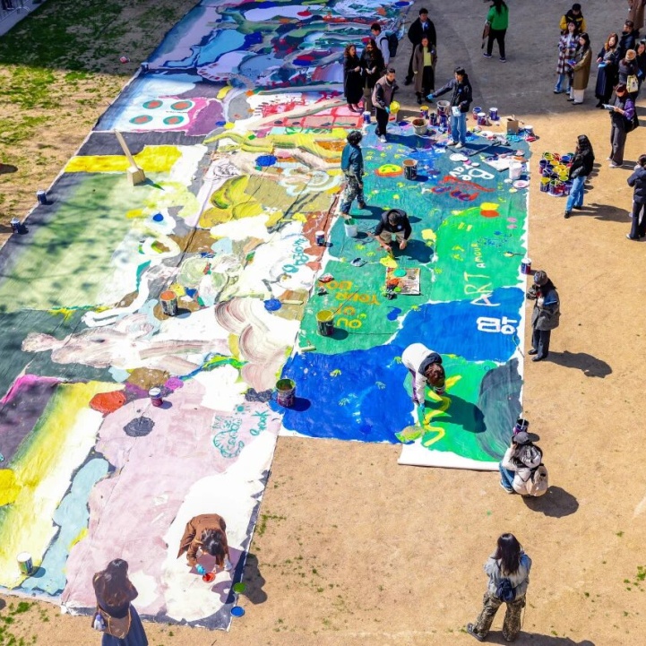 此次《城市信号勘探》不仅是一次简单的绘画创作,更是一次公共空间的艺术实验。过往的市民不仅可以驻足观看艺术家的创作过程,更能通过现场的互动环节,亲手为这幅“城市画卷”添上自己眼中的上海色彩。