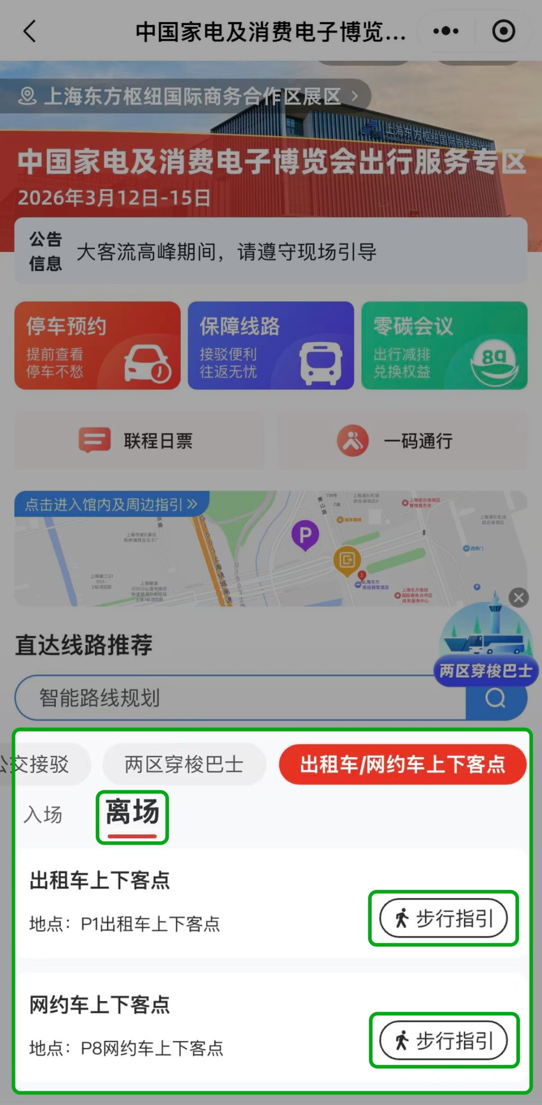 扫描下方二维码,或登录“随申行”APP/微信小程序,进入 “中国家电及消费电子博览会出行服务专区”。
