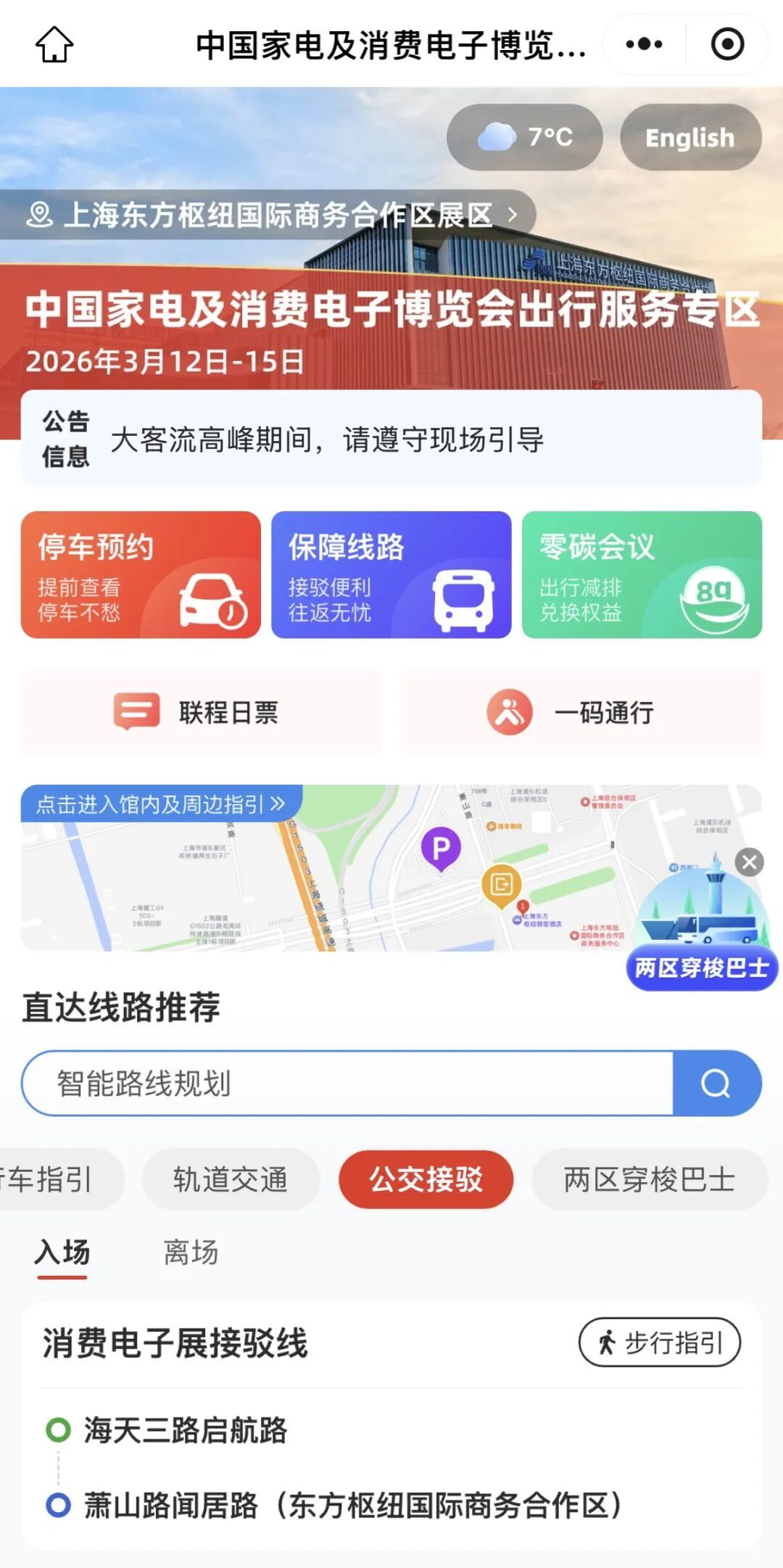实时调整怎么查? 展会期间如遇交通保障措施临时变化,专区顶部公告栏将第一时间更新。