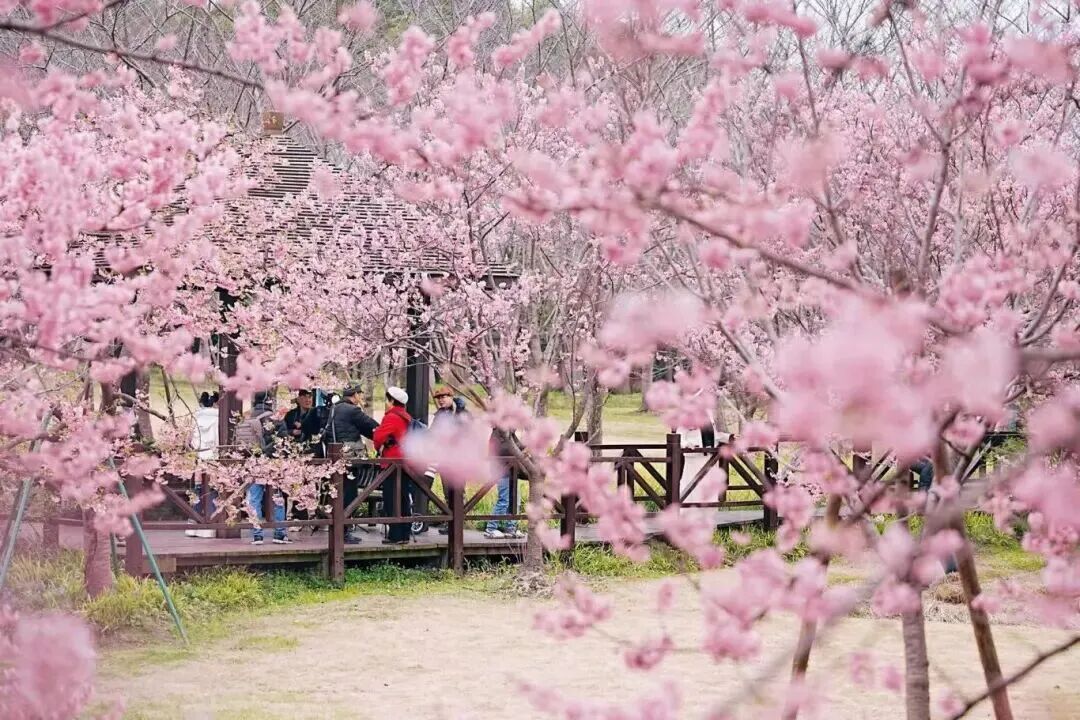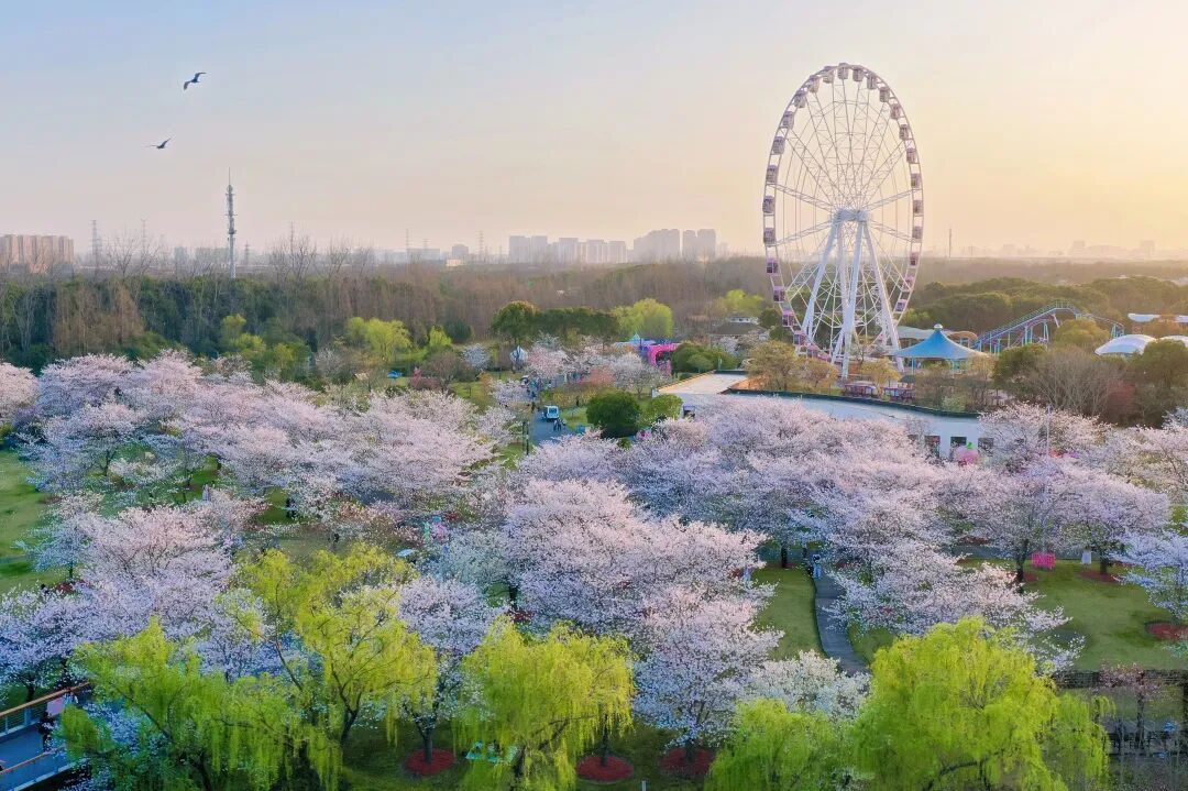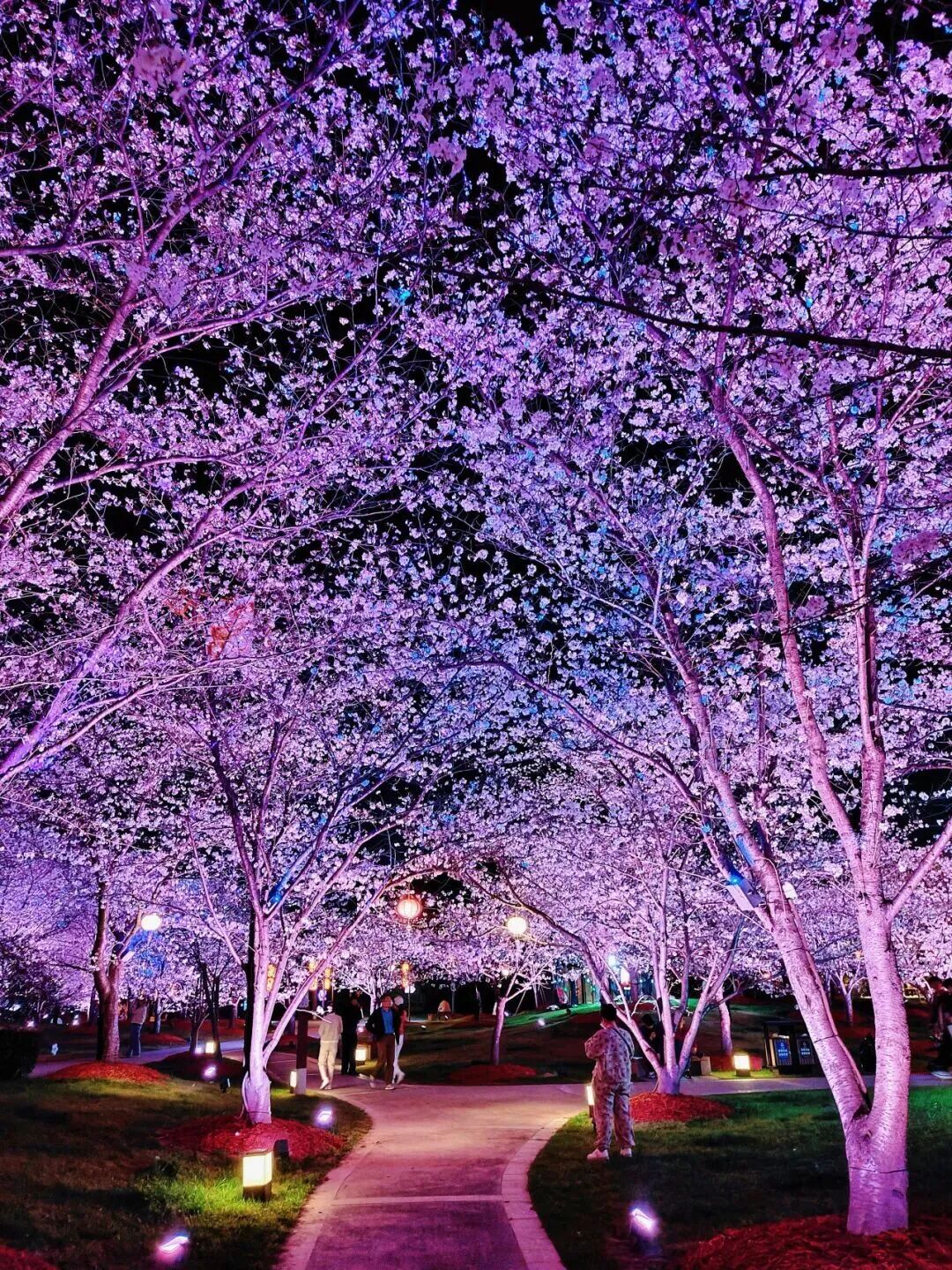 春日顾园,120个品种、16000多株樱花次第绽放,汇成1600余亩樱海。同时,首创“景随花移”夜樱模式,点亮全时段赏樱体验,根据花期进程,动态调整光影布景核心区域。整个樱花节期间,任意时段到访都能邂逅樱花盛景。