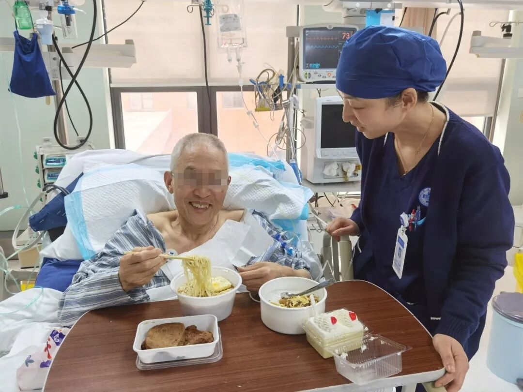 就在不久前,同济大学附属同济医院重症医学科的医护人员就为一名严重感染致脓毒血症的七旬老人王伯伯举办了一场特殊生日会,诠释了这种‘温度’。“祝您生日快乐!”歌声穿透监护仪的滴答声,在ICU病房轻轻回荡。“王伯伯,祝您早日康复……” 护士们带着精心准备的生日面和蛋糕来到王伯伯病床旁,齐声为老人唱起生日祝福歌。在欢快温馨的歌声中,老人度过了一个特殊而难忘的生日。这一刻,生死时速与人文关怀交织出重症医学科的底色:以医术托举生命,以温情抚平惶惑!