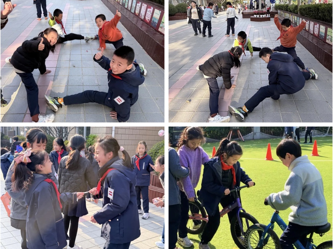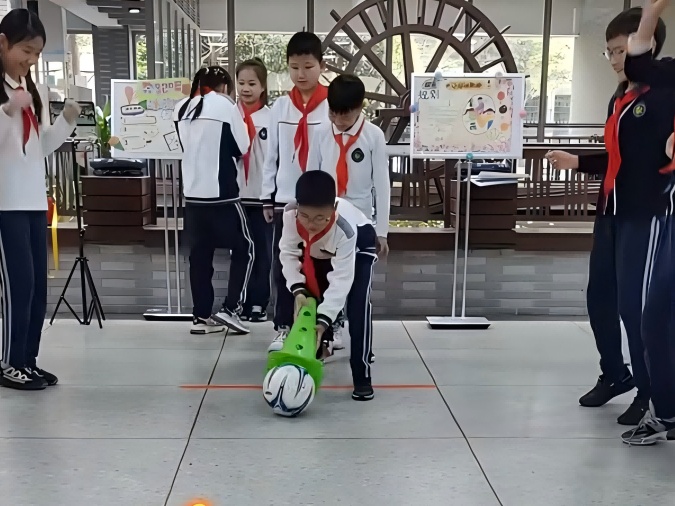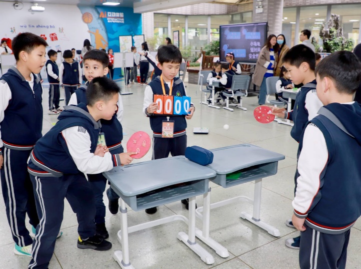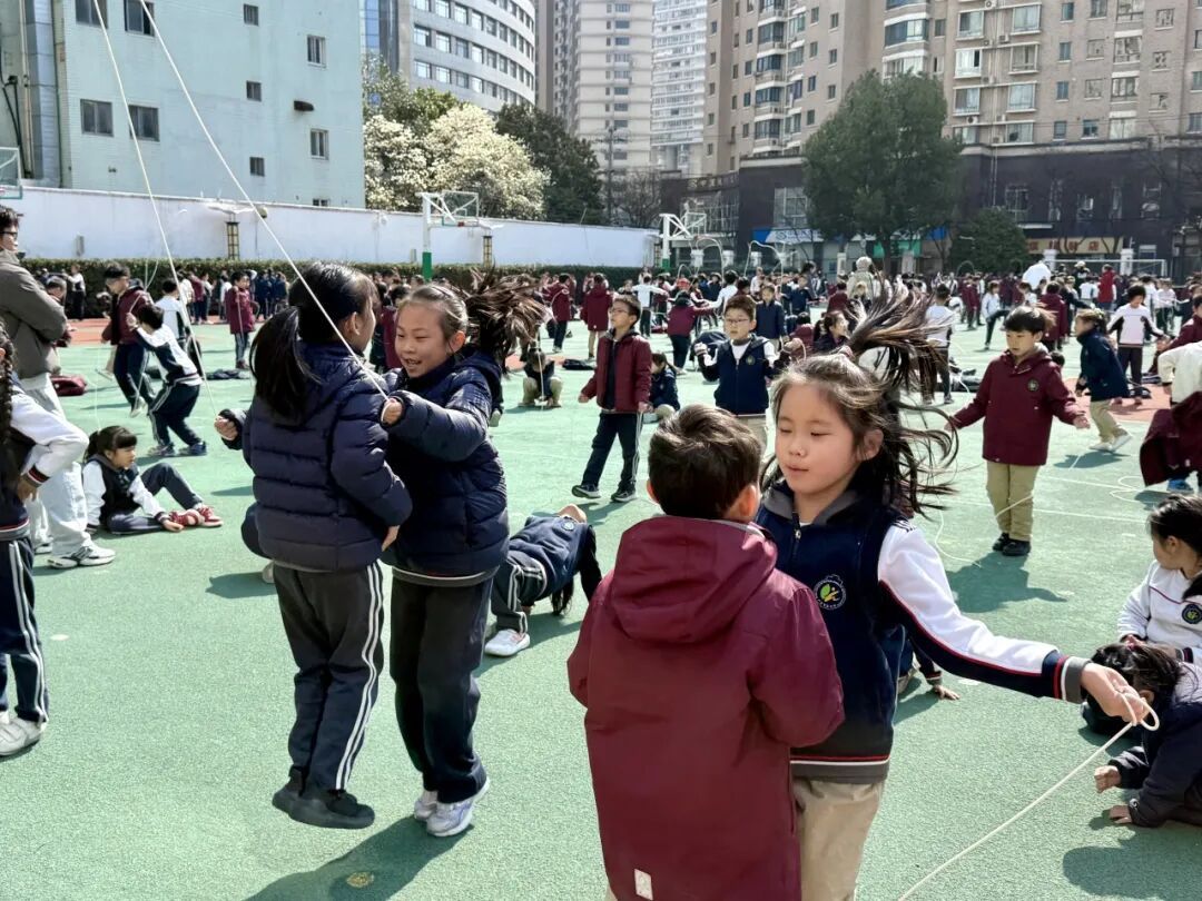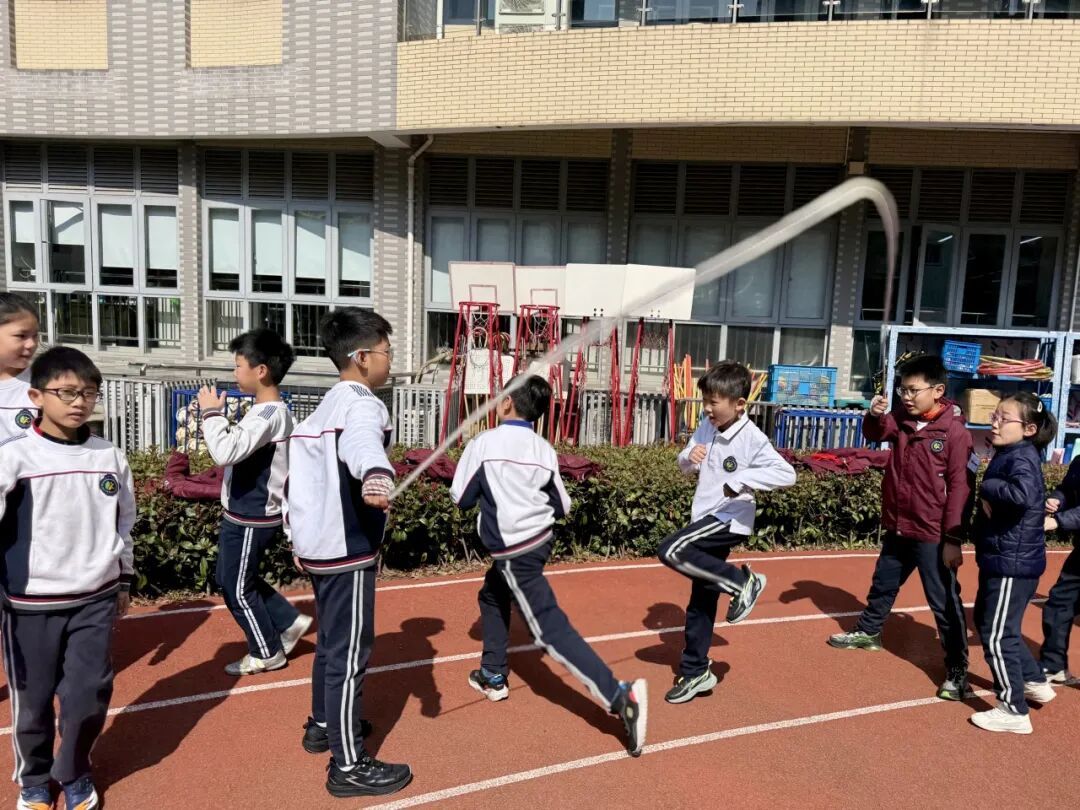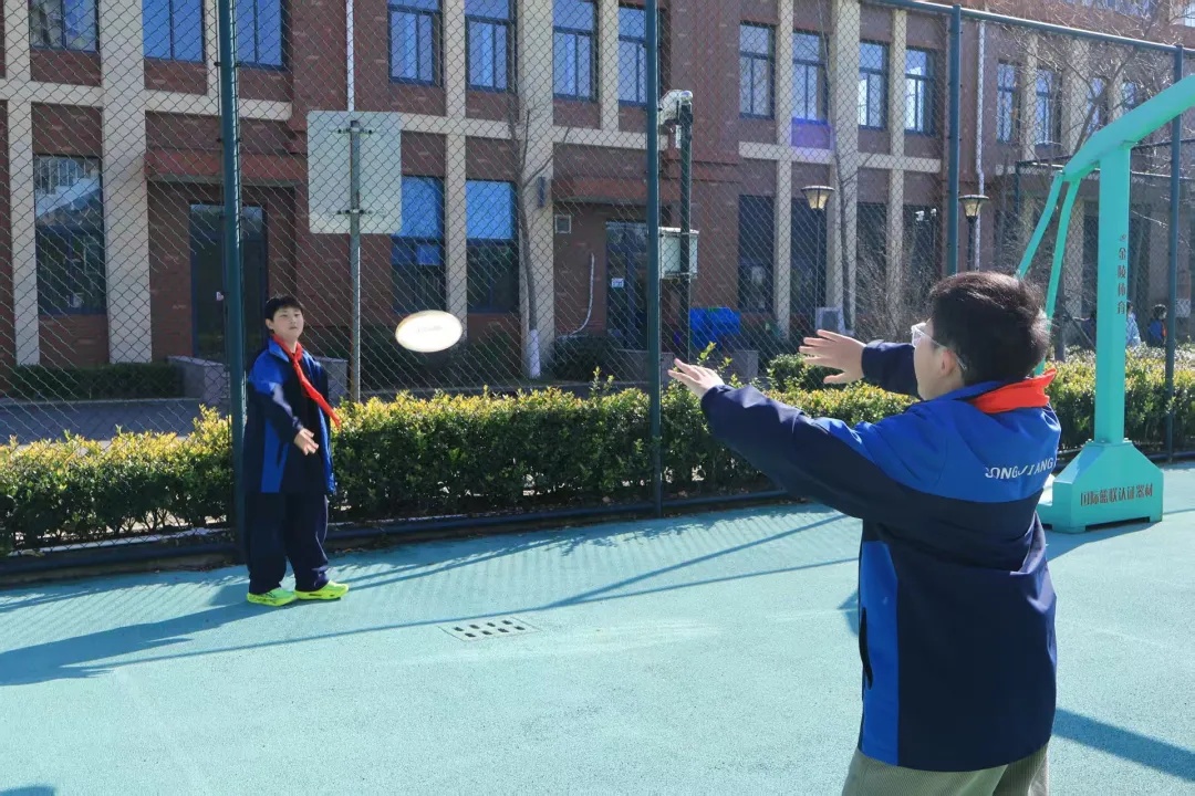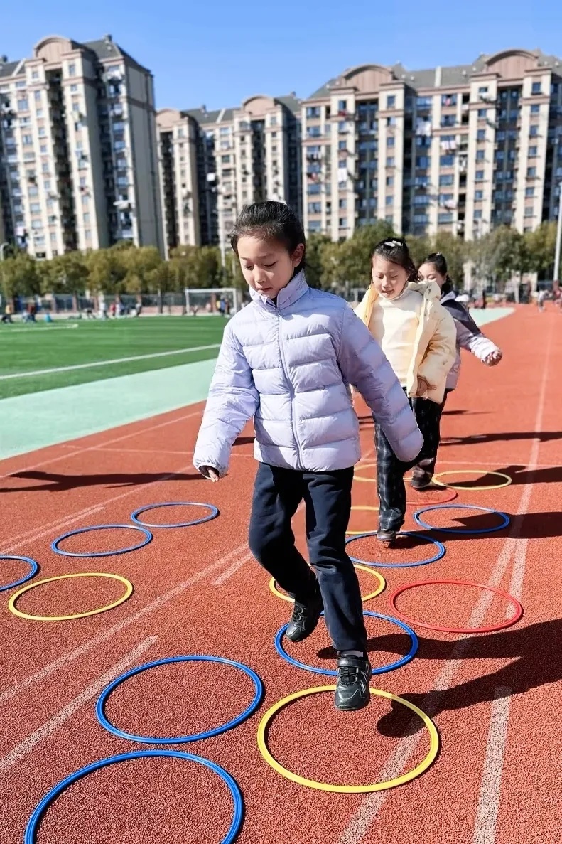 此外,学校根据不同年龄段学生的身心发展特点,设计了分层活动。一二年级安排了跳跳球、滚铁环等趣味性强、简单易学的项目;六年级学生有机会体验飞盘、匹克球、板羽球、绳梯、单双圈等潮流运动。