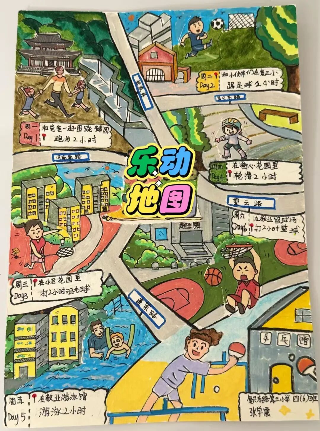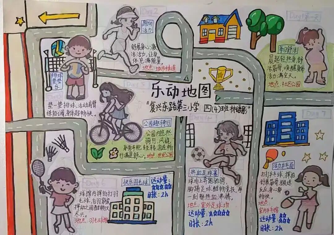 黄浦区复兴东路第三小学通过开展“我的课间我做主”创意游戏项目,鼓励学生自创课间游戏,在设计与试玩中点燃创造火花。此外,学校还指导学生制定个性化乐动地图,通过校内外资源联动,将校内课间活动延展,让运动成为亲子交流、乐享生活的积极样态。