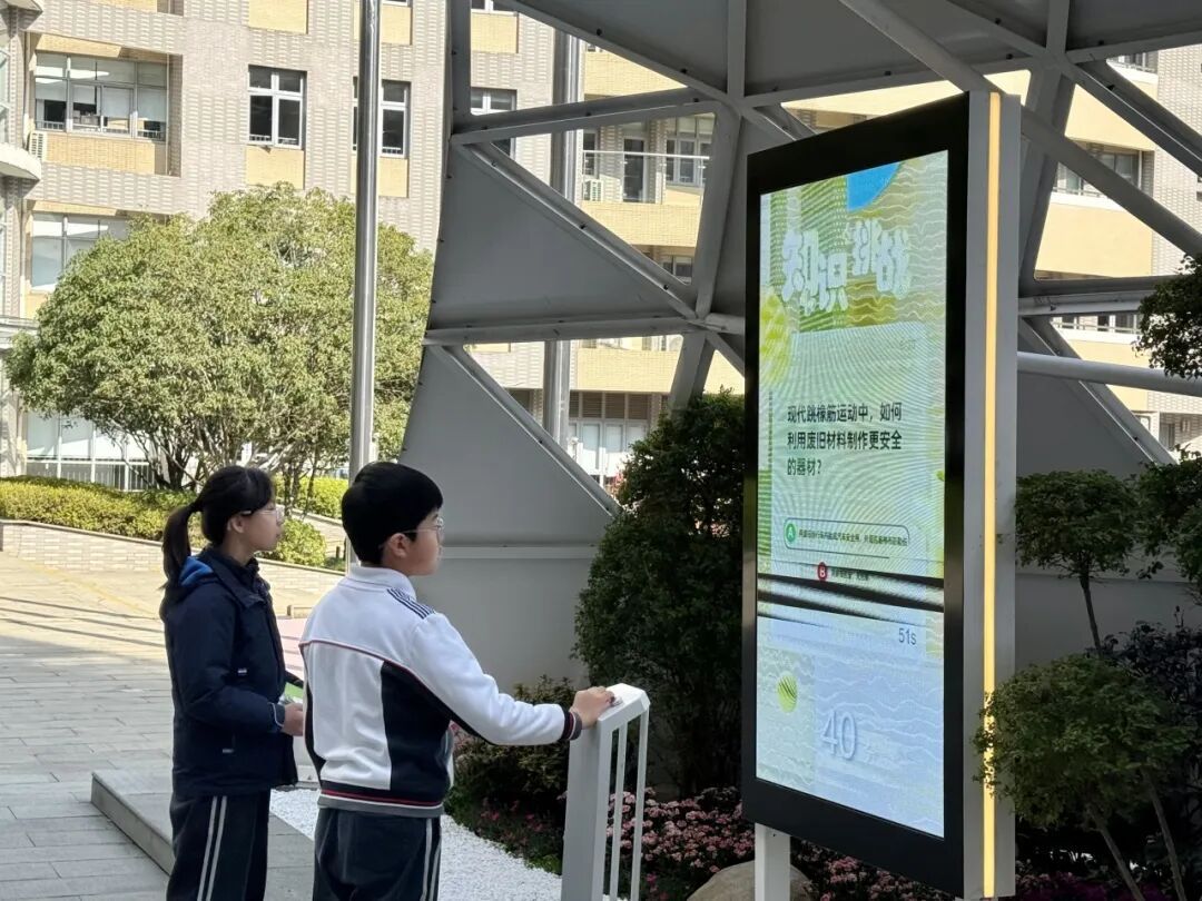 小编在卢湾实验小学观察到,课间,几位学生在科技长廊的互动屏前答题,屏幕上的内容定期更新,目前,主要科普一些与体育运动相关的知识,不方便运动的学生可以前来互动。