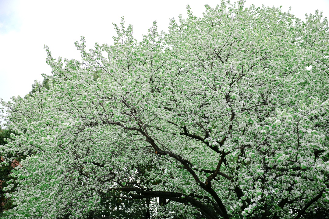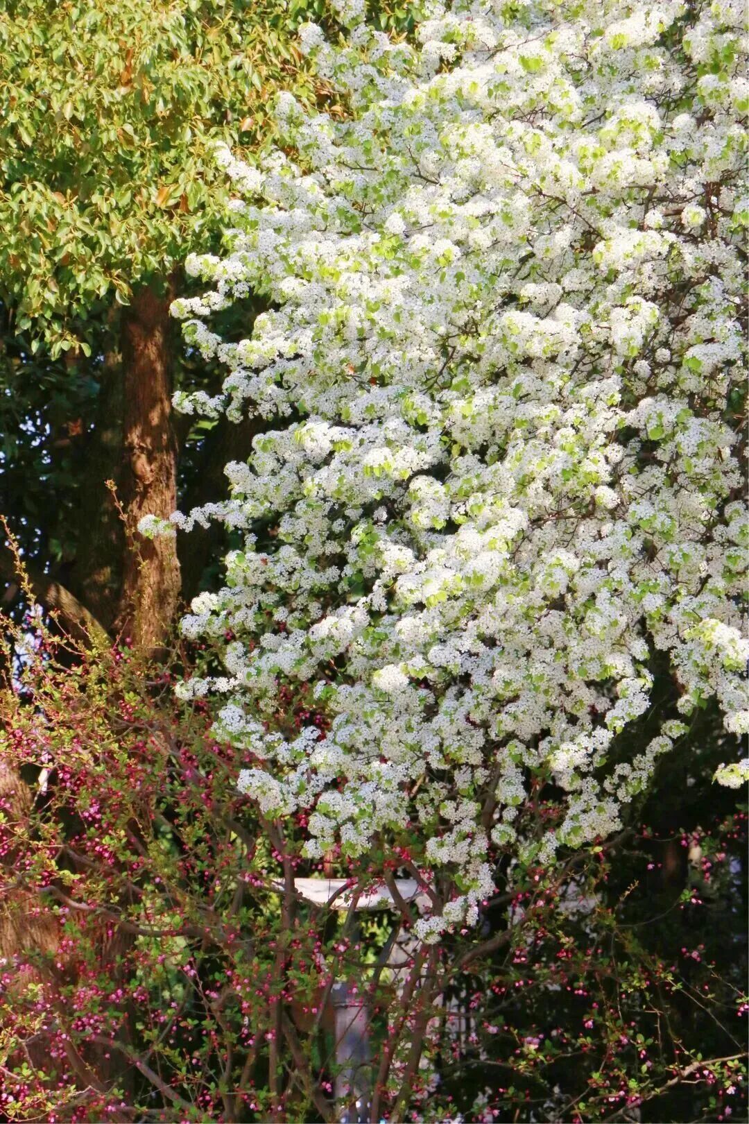 每年暮春时,杨浦延春公园就会迎来一年中最富诗意的时刻。素有“镇园之宝”美誉的杜梨树绽放出如雪繁花。 每当公园东南角的“杜梨王”进入盛花期时,高逾8米的伞状树冠上,万千白花织就成一片片流动的云锦。 一簇簇洁白无瑕的杜梨花,在春天里显得格外清新雅致,浪漫至极。 花梗在微风中轻颤,漫天“飞雪”浪漫至极。 地址:杨浦区营口路20号 参考花期:3月底至4月上旬