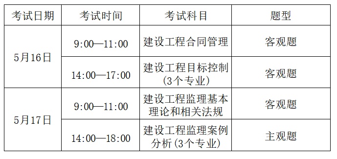 《建设工程监理基本理论和相关法规》和《建设工程合同管理》为基础科目;《建设工程目标控制》和《建设工程监理案例分析》为专业科目。专业类别分为土木建筑工程、交通运输工程和水利工程,报考人员可根据实际工作需要选报其一。