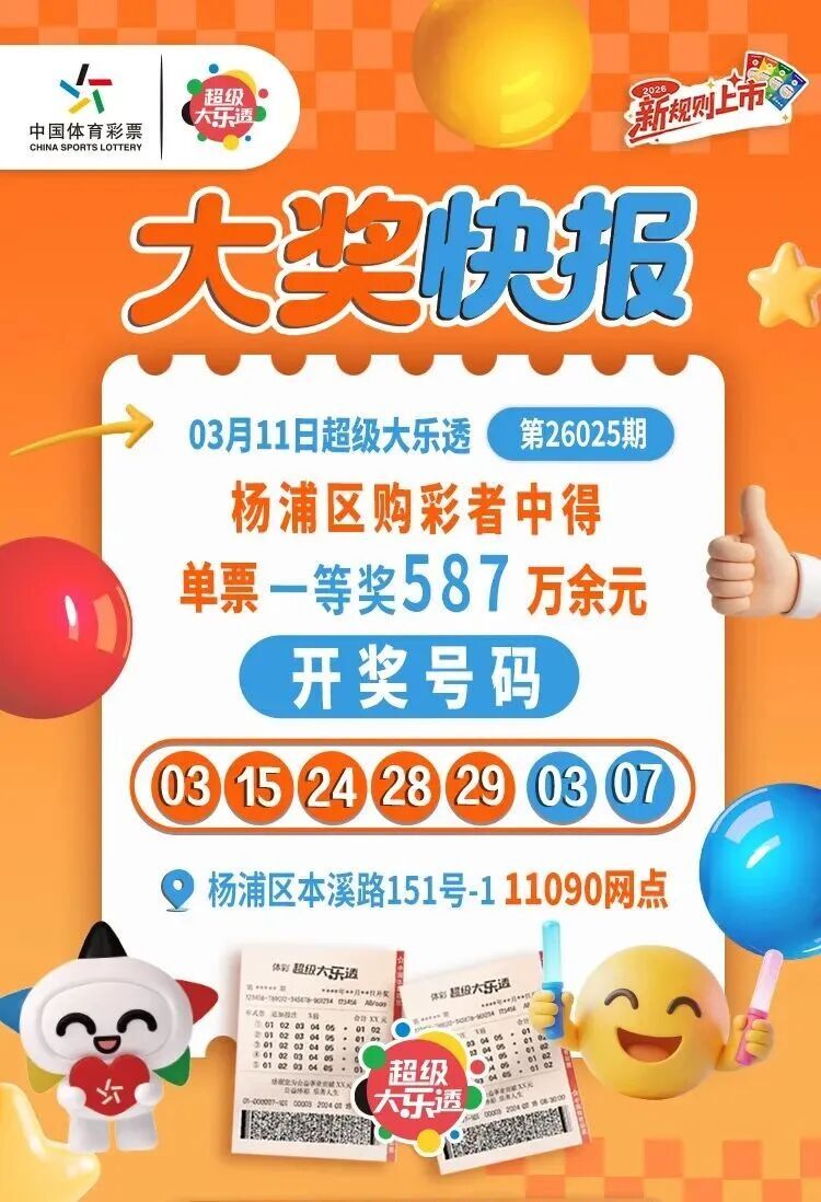 3月11日,超级大乐透第26025期开奖,本期全国销售2.99亿元,为国家筹集彩票公益金1.07亿元。本期一等奖出自上海、浙江、湖北、重庆、四川、贵州等地。