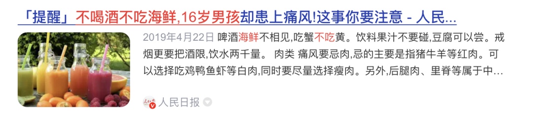比如,浙江就有个16岁男孩,每天拿果汁当水喝,结果年纪轻轻就得了痛风。
