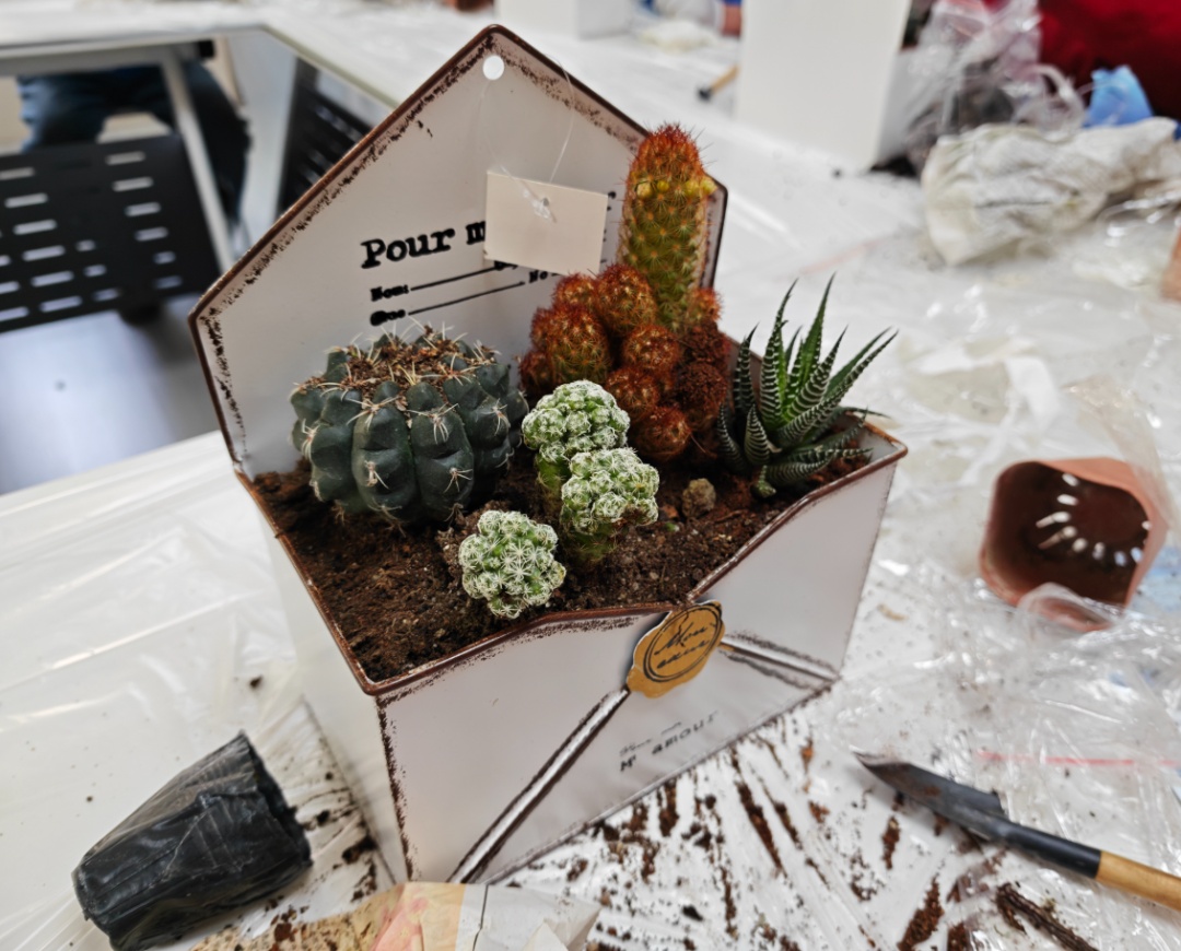 在讲师的指导下,大家有条不紊地学习和制作,将原本普通的快递箱、泡沫箱变成了一个个精致的“迷你花盆”,践行了“变废为宝”的环保理念。