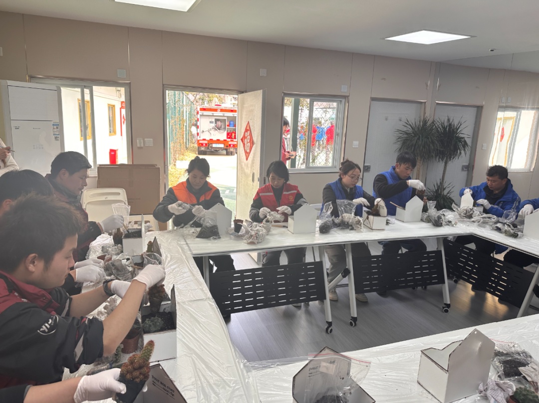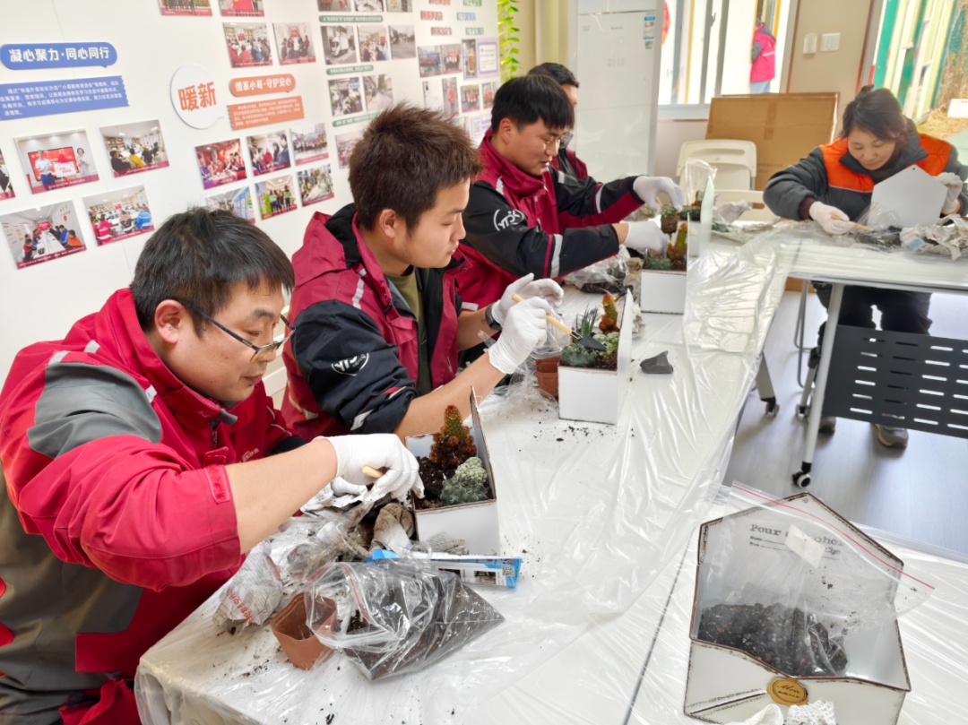 活动室里,配送小哥、外卖骑手纷纷化身“园艺师”,亲手体验了种植的乐趣。