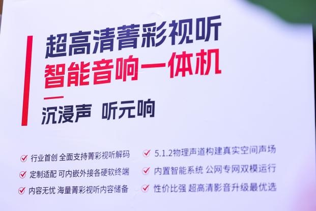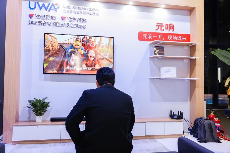 北京悦享天空科技有限公司的智能音响一体机搭载了国标Audio Vivid(菁彩声)解码,为观众提供了身临其境的客厅全景声影音体验。