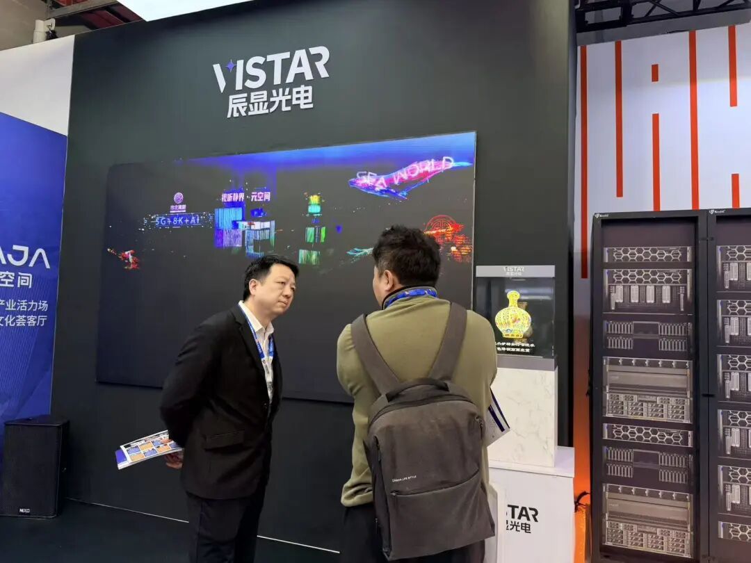 显示技术的代际跨越:作为国家级Micro-LED领域唯一的“链主”企业,辰显光电带来了全球首款P0.7 TFT玻璃基Micro-LED商显产品(135寸)及首款19英寸P0.4 TFT基Micro-LED透明屏。其高达70%的全球领先透波率与近乎无感的无缝拼接技术,重新定义了专业显示的画质与形态。