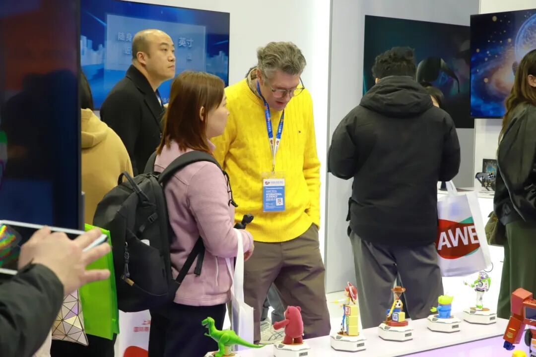 智能终端的形态突破:在机器人领域,乐森机器人带来了全球首款支持全自动变形的威震天旗舰机器人及《玩具总动员》系列Mini机器人。通过先进的AI算法与精密伺服系统,机器人不仅是玩具,更是具备情感交互与拟人化表达的“家庭新成员”。
