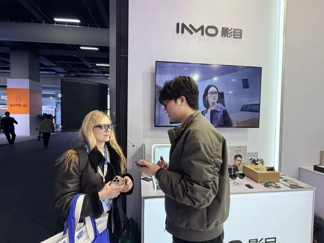 人机交互的场景重构:中国AR眼镜“四小龙”之一的影目科技,现场展示了AI眼镜美学标杆INMO GO3与全球首款1080p高清观影眼镜INMO AIR3。GO3系列以超过90%的翻译眼镜市占率,展示了AI+AR在垂直场景的深度落地;AIR3则通过等效150英寸的隐形巨幕,开启了移动观影的全新可能。