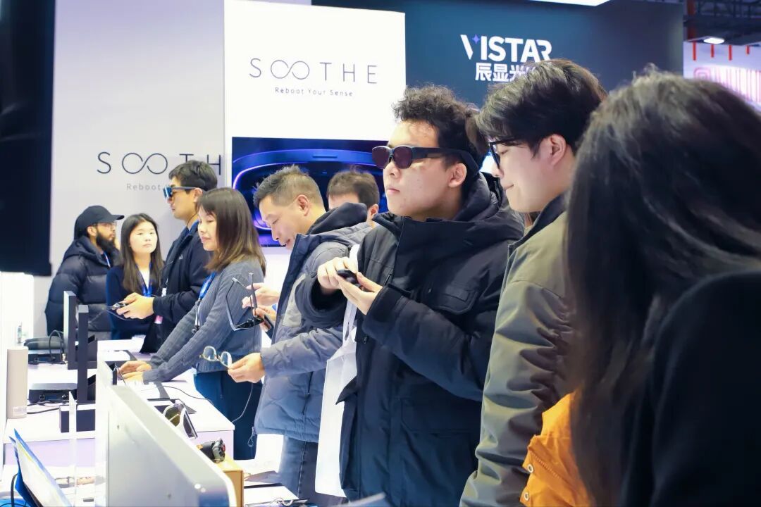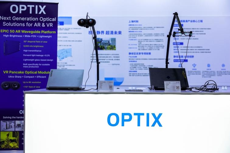 上海极溯视界技术有限公司展出了达到双眼8K分辨率、115°超大视场角的VR显示模组,以及入眼亮度超过6000 nit的AR光波导模组,代表了国内微显示技术的顶尖水平。