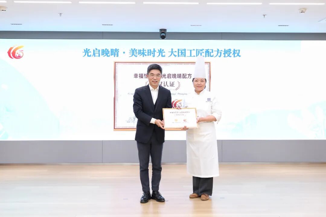 开学典礼现场,上海市现代食品职业技能培训中心校长、国务院政府特殊津贴专家、“大国工匠”干文华,与区委老干部局完成“幸福恰巴塔·光启晚晴配方”交付授权,助力打造特色美食服务品牌。