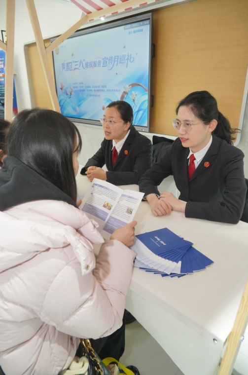 3月11日,黄浦区12338妇联维权服务中心迎来了首场活动——黄浦区“三八”维权服务宣传月巡礼。区妇联携手区法院、区检察院、区公安分局、团区委、区妇保所、区女律联、复兴消防救援站、防救志愿服务总队等单位,围绕“法援护航”“职场赋能”“身心关爱”“综合服务”等主题,为黄浦妇女群众打造维权服务矩阵。