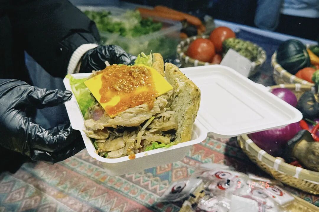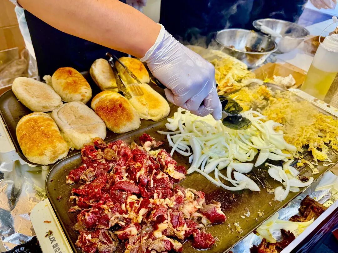 “面包的日尝”齐齐哈尔烤肉酸菜恰巴塔,腌制好的纯牛肉从齐齐哈尔空运过来,店员:忙了一整天,根本停不下来!(A25)