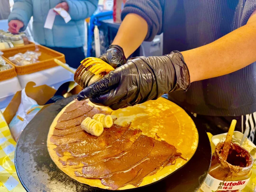 Jenny Duǒ的香蕉巧克力可丽饼,不限量里的“硬通货”,切香蕉的嘎吱声特别治愈,做好后是温热的,香甜不腻。