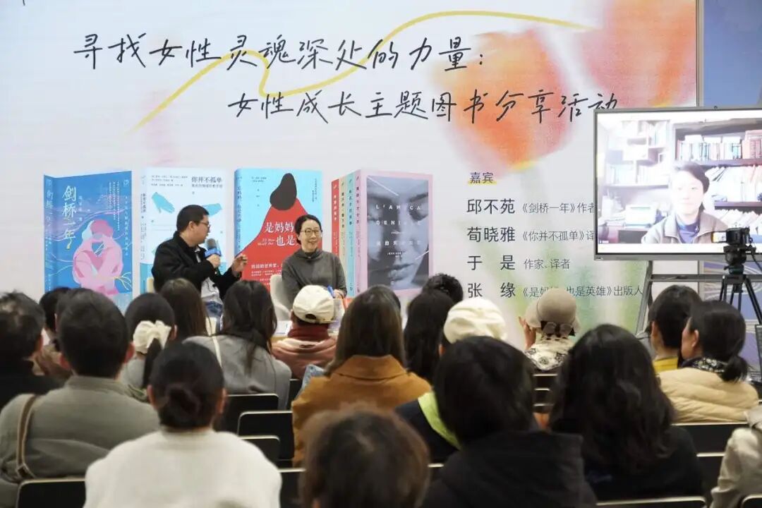三八国际劳动妇女节的下午,上海图书馆携手四家出版机构,邀请《剑桥一年》作者邱不苑(线上);《你并不孤单》译者兼合作策划人荀晓雅(线上);作家、文学翻译于是,以及《是妈妈,也是英雄》的出版人张缘一起,探讨了“女性成长”这一主题下的创作和出版。