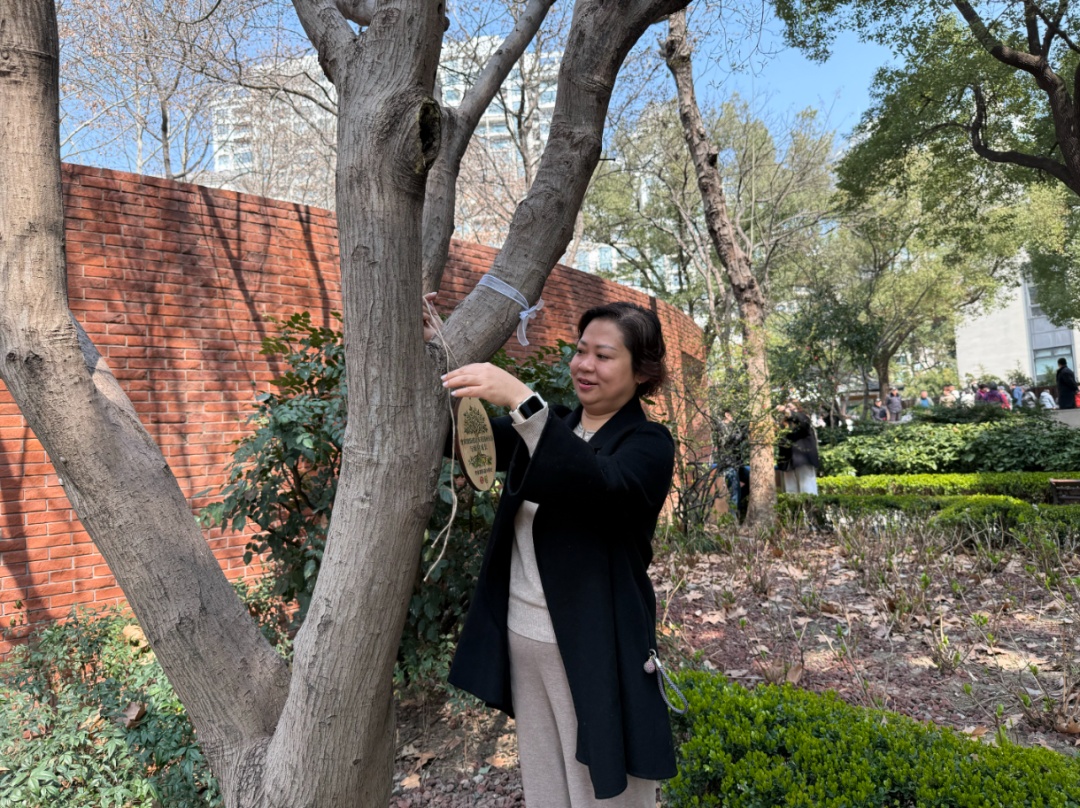 德必静安WE园区副总经理田婧作为合伙人代表发言,她表示:“作为扎根曹家渡的企业,我们不仅是城市发展的受益者,更应是绿色家园的建设者。认养一棵树,不仅是责任,更是情感连接。”