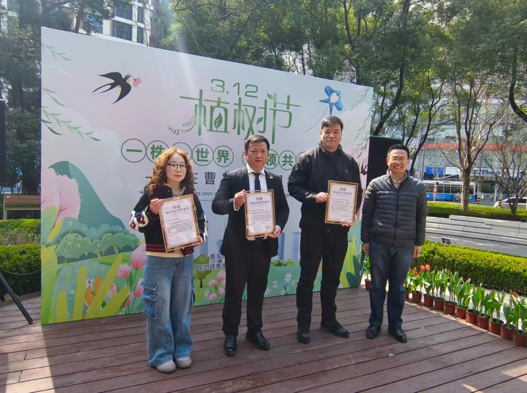 活动还同步启动“大树认养”计划,来自辖区的9家社区单位积极参与,分别认养曹家渡公园内的树木,形成“一树一单位、一园多合伙”的生态共建格局。