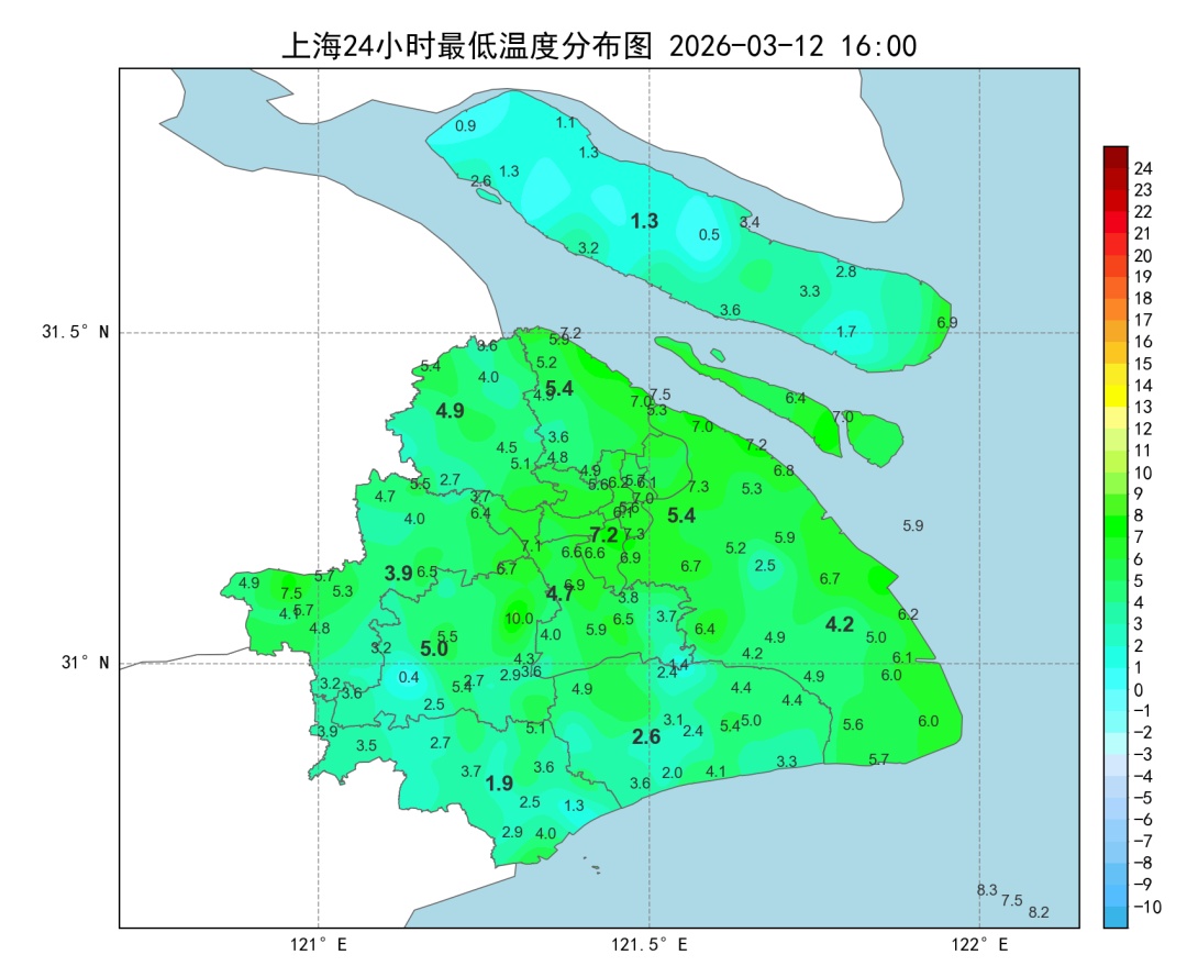 全市最低气温在1~8℃之间