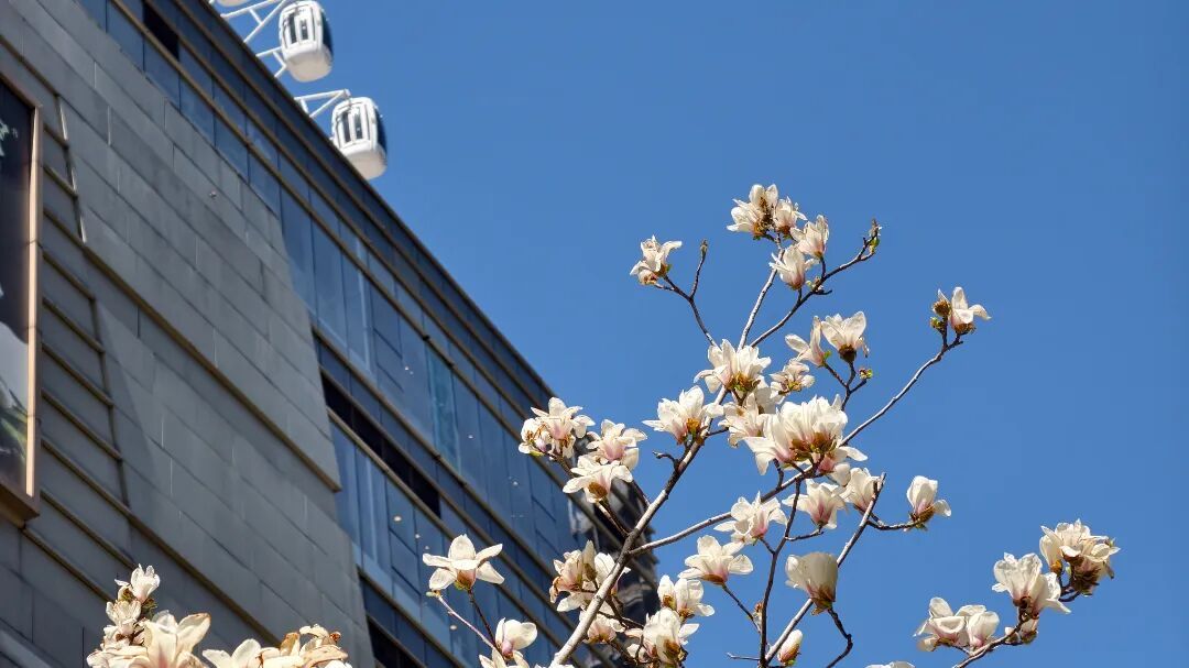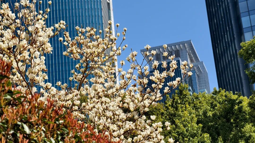 文安路人行道两侧的白玉兰树错落排列,没有多余遮挡,洁白花瓣缀于枝干,无需踮脚就能近距离观赏、拍照。不同于景区的热闹,这里藏着满满的市井烟火气,来往行人步履匆匆,与洁白的玉兰相映,构成一幅治愈的春日街景图。
