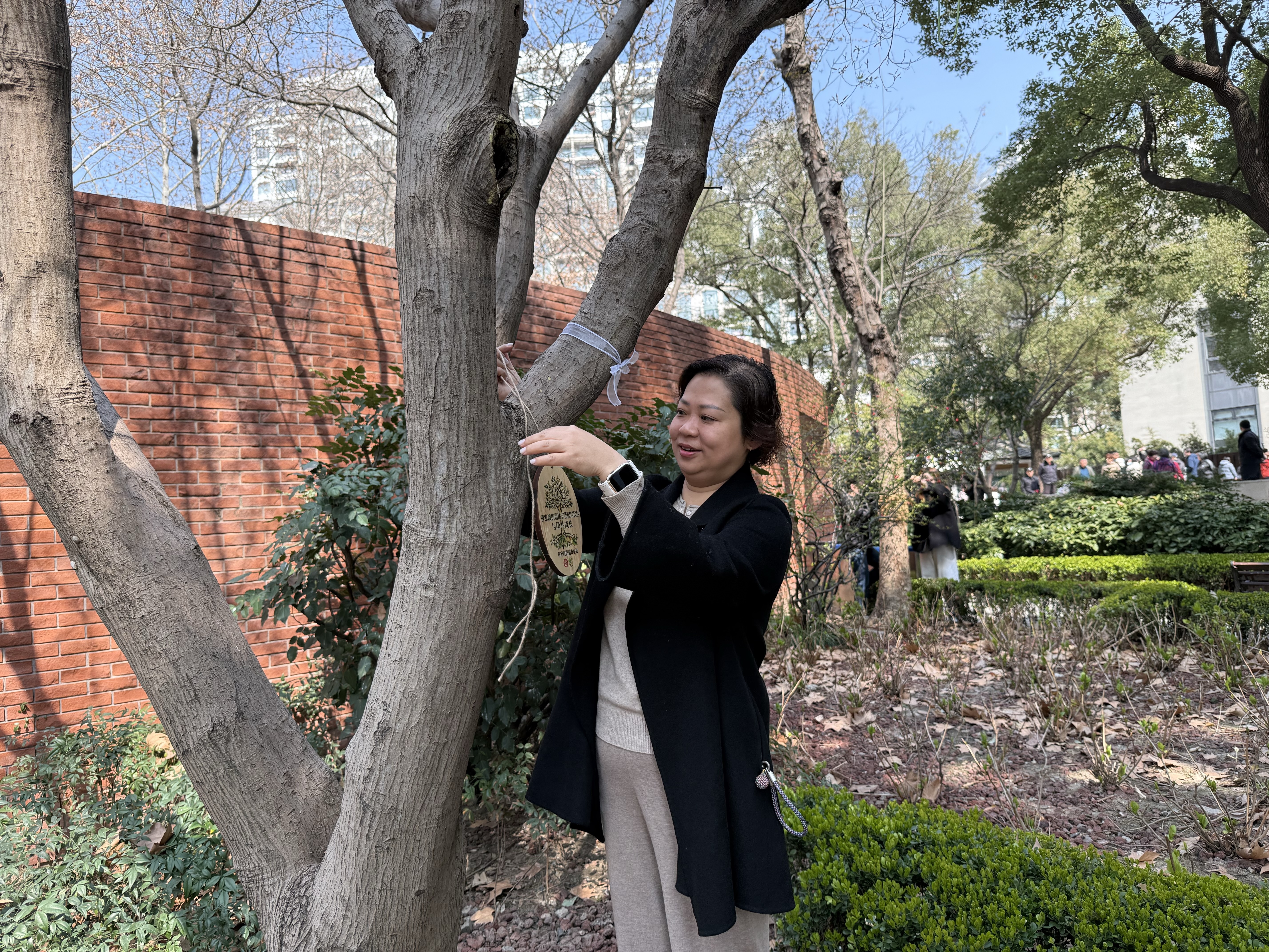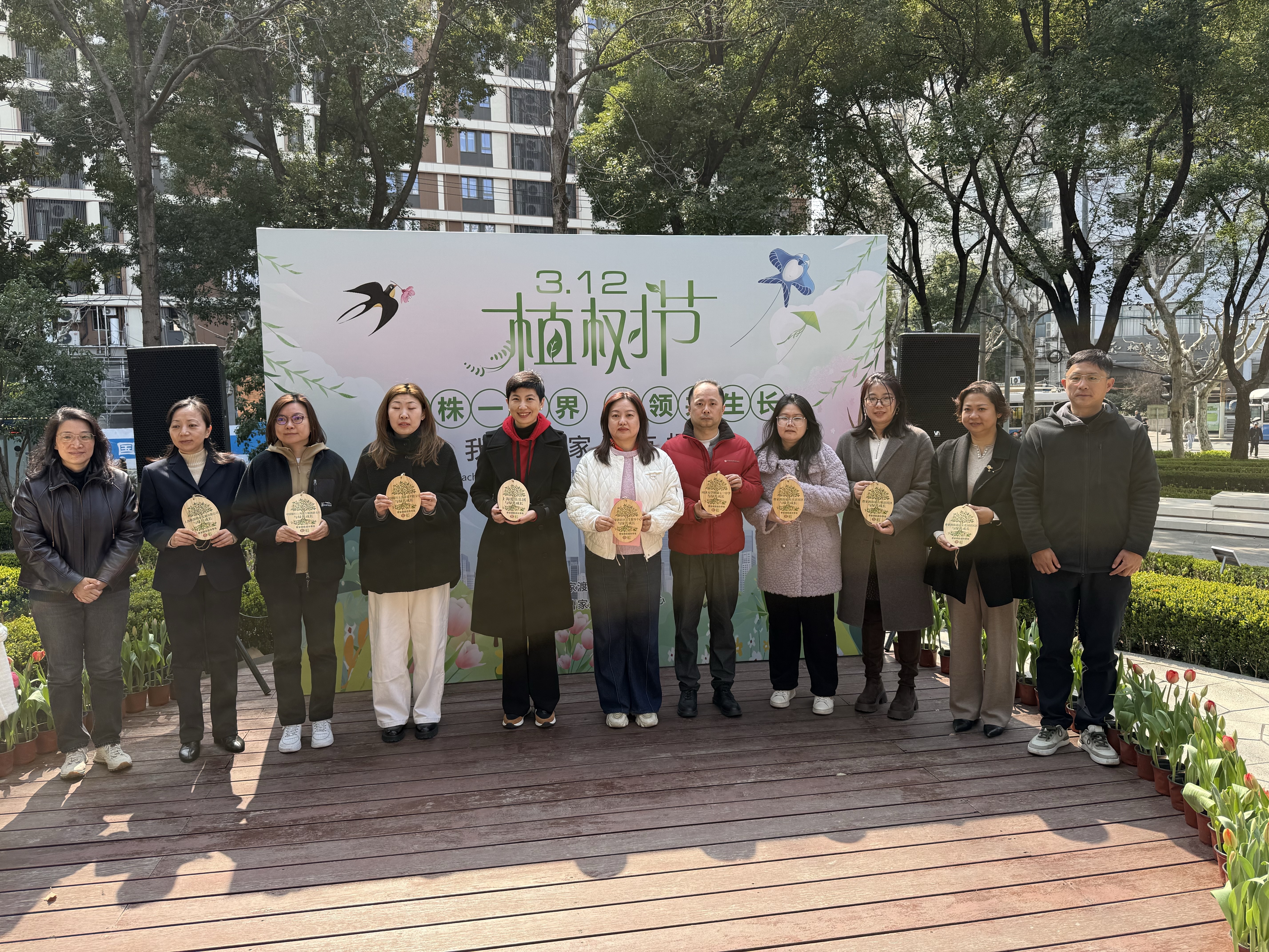 活动还同步启动“大树认养”计划,来自辖区的9家社区单位积极参与,分别认养曹家渡公园内的树木,形成“一树一单位、一园多合伙”的生态共建格局。德必静安WE’’园区副总经理田婧作为合伙人代表发言,她表示:“作为扎根曹家渡的企业,我们不仅是城市发展的受益者,更应是绿色家园的建设者。认养一棵树,不仅是责任,更是情感连接。”