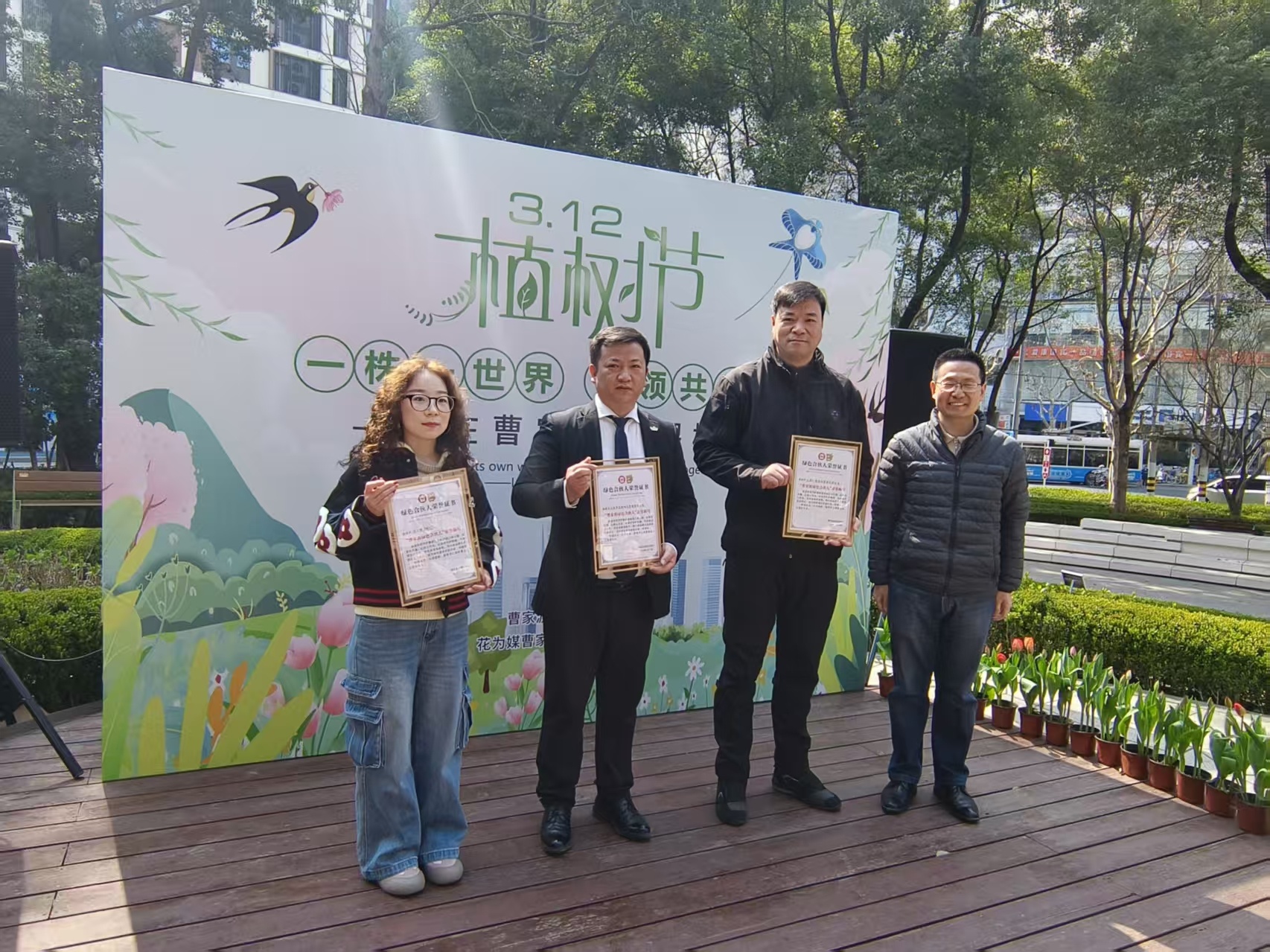 现场,曹家渡街道首次提出“绿色合伙人”概念,赋予参与单位“守护者、传播者、践行者”三重身份,推动植树护绿从“种树”向“护绿”延伸。三家首批“绿色合伙人”单位上海广慧物业管理有限公司、上海新里程物业管理有限公司、德必静安WE"分别认领曹家渡花园口袋公园、曹家渡绿岛口袋公园、曹家渡云和花园口袋公园,成为曹家渡街道首批正式授证的生态合作伙伴。