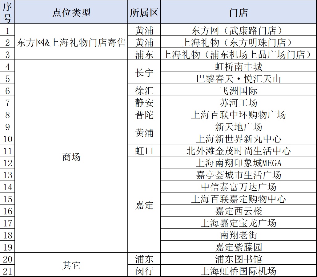 据悉,3月13日至5月5日,20台“Box in”嘉定文创福袋机器人商店将同步入驻上海南翔印象城MEGA、新天地广场、上海新世界新丸中心、虹桥南丰城、上海百联中环购物广场、北外滩金茂时尚生活中心等全市9个区20个高流量商业体点位。活动期间,福袋产品将通过透明橱窗集中展示,市民游客扫码即可购买,实现全天候自助式文创消费体验。