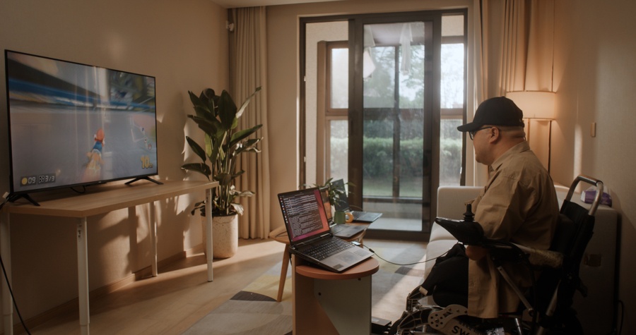 中国首例侵入式脑机接口临床试验受试者术后一个月脑控玩赛车游戏