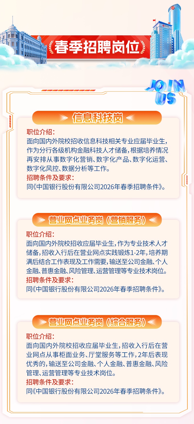 行业招聘丨中国银行上海市分行2026年春季招聘和实习生招聘同步启动!