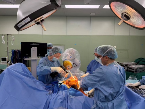 这台手术由何川主任医师主刀,黄强主任医师担任一助,何医生在瑞金医院黄浦院区已成功完成400余台机器人辅助关节置换手术,可以说是这项技术的“老司机”。这一次,他的“新搭档”——嘉定院区新进的国产机器人手术系统,同样表现出色。嘉定院区引进的这台国产机器人可以完美匹配各家关节假体,技术兼容性好。